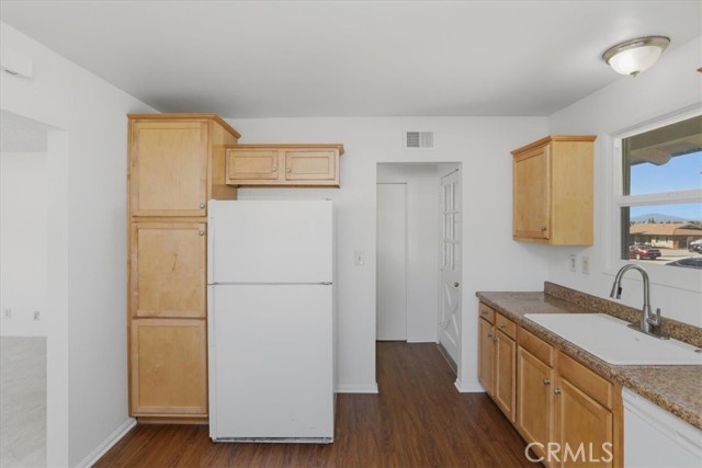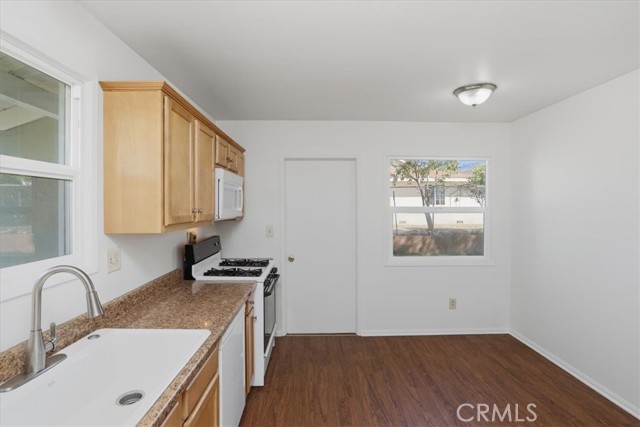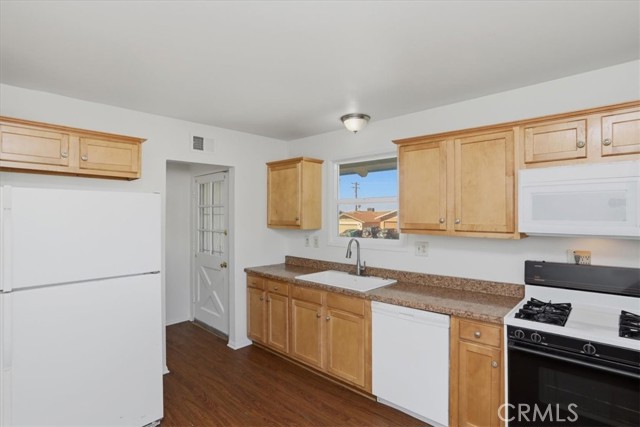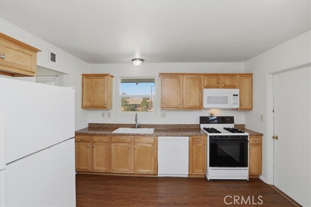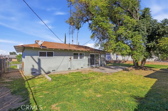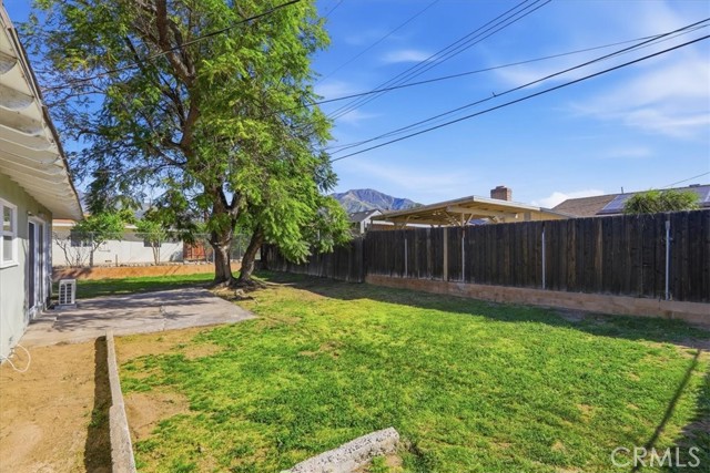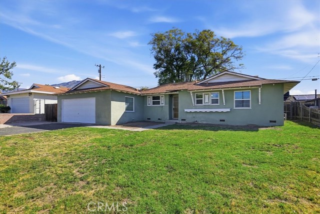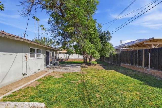 Welcome to this charming single-story ranch home in Highland, offering comfort, simplicity, and great value for first-time buyers. This 3-bedroom, 1.75-bath home offers approximately 1,090 sq ft of living space on a generous 7,200 sq ft lot and is conveniently located near the 210 freeway, providing easy commuter access while still enjoying a quiet neighborhood setting. The home features a bright and inviting living room with large windows and a sliding glass door leading to the backyard, allowing natural light to fill the space while creating an easy indoor-outdoor connection. The kitchen offers maple cabinetry, faux granite Formica countertops, a dishwasher, a microwave, a 4-burner slide-in gas range, and a refrigerator, with an open layout that provides ample space for everyday cooking and dining. Interior features include fresh paint, vinyl dual-pane windows, laminate and carpet flooring, newer paneled interior doors, gas forced-air heating, and a split-system air-conditioning unit for year-round comfort. The primary bedroom includes a built-in vanity and desk area, along with a private shower, while the hall bathroom offers a tub-and-shower combination. Additional amenities include a composition roof, a 2-car garage with a roll-up door and direct access, laundry hookups in the garage with gas and electric, a security screen door, and side yard access. The property is enclosed by wood and chain-link fencing. The backyard features a beautiful, mature jacaranda tree that provides shade and seasonal color, along with plenty of open space for outdoor living, gardening, or future improvements. This property is an excellent opportunity for buyers seeking a starter home in Highland and a solid value within the San Bernardino County real estate market.