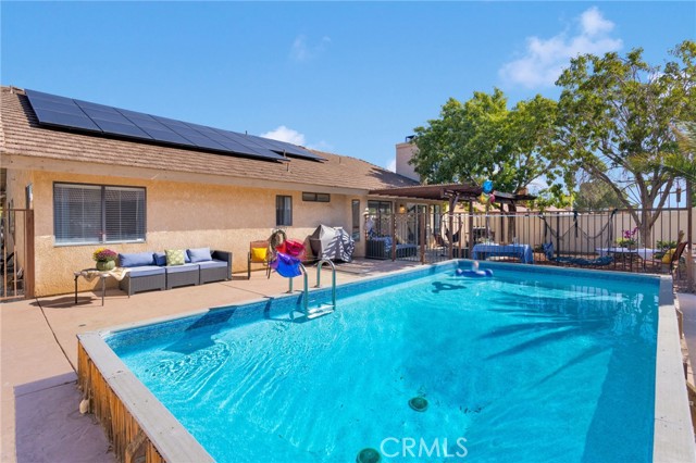 Beautifully UPGRADED POOL Home and FREE SOLAR PACKAGE!! This is a Terrific SINGLE STORY Home and Located in a Family Friendly Community with NO HOA FEES and LOW LOW TAXES * * Come Enjoy this Spacious Floor-Plan Offering 2023sqft with 4 LARGE Bedrooms, Separate OFFICE/Play-Room and 2 FULL Bathrooms * * REMODELED Kitchen w/QUARTZ Counters and Custom Back-Splash, White Shaker Cabinetry, Breakfast Counter for the Kids, STAINLESS STEEL Appliances, Walk-In Pantry & Breakfast Nook * * Cozy Family Room with Raised Hearth Brick Fireplace and LUXURY Vinyl Plank Flooring Throughout * * Wonderful Backyard is PERFECT for ENTERTAINING with a SPARKLING In-Ground POOL (gated for child safety), Large Covered Patio, Gated Side Yard for the Dogs and Lots of Room for the Kids to Play * * UPGRADED & REMODELED Throughout with Custom 2-Toned Paint, Remodeled Kitchen, DESIGNER FIXTURES, Ceiling Fans, Mirrored Wardrobes, Remodeled PRIMARY BATH with Custom Shower & Quartz Counters, LVP Flooring and Base Molding and MUCH MORE * * Spacious Primary Bedroom with Large Walk-In Closet & HIGH Pitched Ceilings - AND - Remodeled Primary Bathroom with DUAL Sinks, Quartz Counters and Custom Tiled Walk-In Shower * * (3) Additional Nicely Appointed Bedrooms and a SEPARATE Office/Play-Room * * TWO Car Attached Garage has an Enclosed Office (can be removed) * * TERRIFIC Curb Appeal with Covered Front Porch and Drought Tolerant Landscape * * Close to Schools, Shopping, Dining/Restaurants, Parks and EZ Freeway Access * * SUBMIT YOUR OFFER Before it's GONE!!!!