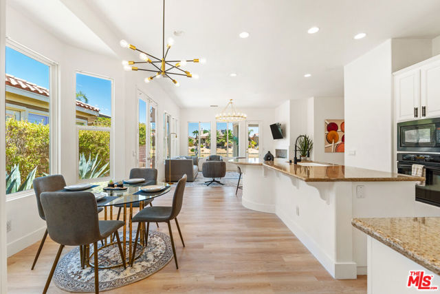 Beautifully remodeled 4-bedroom, 3-bath home in the desirable gated community of Mission Shores, including a private detached casita, perfect for guests, a home office, or rental potential. This move-in-ready property features an open floor plan and beautiful, upgraded flooring throughout. contemporary lighting, and a refreshed kitchen with updated cabinetry, sleek countertops, and quality appliances, ideal for entertaining. Bathrooms have been tastefully remodeled with Calcutta quartz countertops and upgraded fixtures, creating a spa-like feel throughout. The thoughtful upgrades and clean, modern finishes make this home truly turnkey. Step outside to your private backyard oasis featuring a sparkling pool and spa with excellent views, perfect for relaxing or entertaining while enjoying the beautiful desert scenery. There's a little office in the house. I don't see any mention of that. Also, new artificial grass in the backyard, low maintenance required. Also, there are smart home features such as electric vehicle charging, keyless entry, and smart thermostats. Enjoy low-maintenance living with a low HOA that includes front-yard landscaping, an upgraded Spectrum TV package, and 1-gig high-speed internet. Ideally located in the heart of the Coachella Valley near golf, dining, shopping, hiking trails, and Palm Springs International Airport. Excellent opportunity as a primary residence, vacation home, 1031 exchange, or seasonal rental. Community allows rentals with a minimum stay of 27 days (Airbnb/VRBO potential). Easy to view. Don't miss this great opportunity.