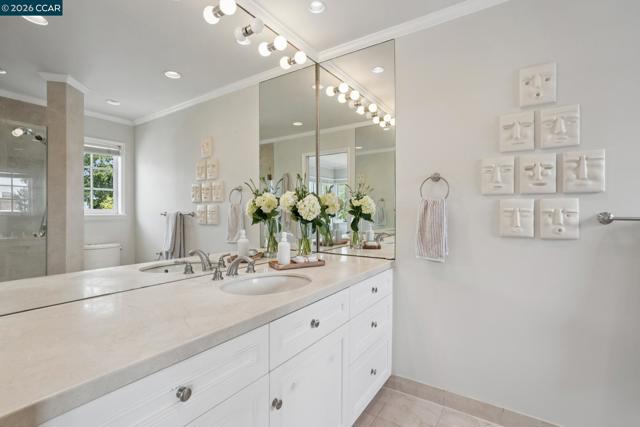 Stylish Upper Rockridge traditional offering 4BD/3BA and a flexible, light-filled floor plan. A welcoming front porch opens to warm interiors featuring hardwood floors and abundant natural light. The living room with fireplace and large picture windows frame neighborhood views with glimpses of the Bay. The eat-in kitchen includes stainless appliances, generous counter space, and a breakfast nook, while the adjacent formal dining room is ideal for gatherings. The upper level has three spacious bedrooms and two full baths, including a primary suite. The lower level includes a spacious family room with French doors opening to the generously sized, level backyard surrounded by mature landscaping. Ideally located near Rockridge and Montclair Village shops, restaurants, BART, and Highway 24 for easy commuting.