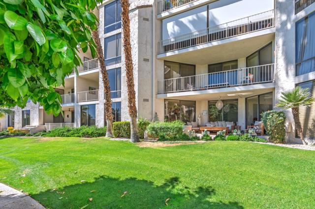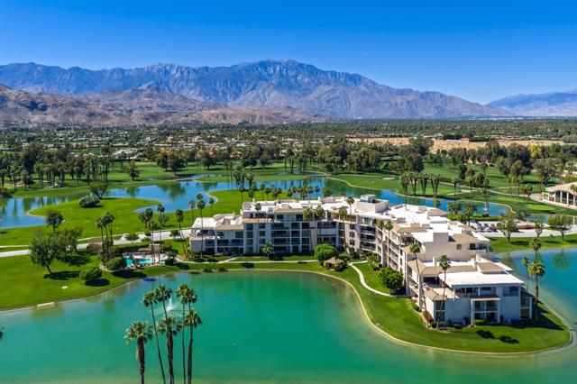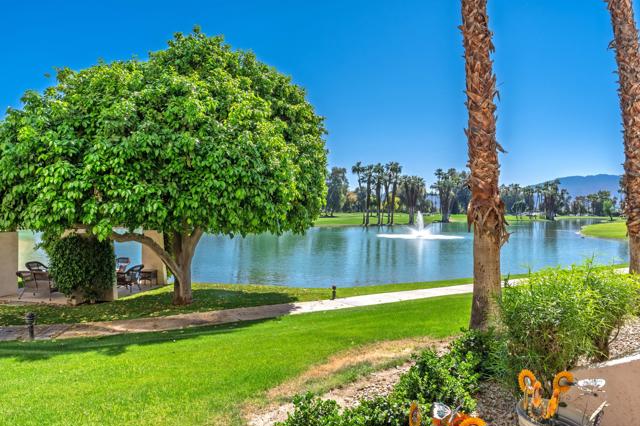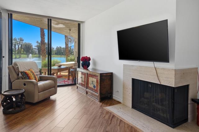 Step into this beautiful ground-floor condo at Desert Island. This popular layout includes two bedrooms, a den, two bathrooms, and a powder room. The spacious, east-facing unit has an open floor plan with several seating areas, two fireplaces, large walk-in closets, and amazing lake views. Desert Island provides a special resort-style living experience in a high-rise community surrounded by a peaceful lake and an 18-hole golf course. Residents have access to amenities like tennis and pickleball courts, a gym, pedal boats, and catch-and-release fishing.The community has on-site management and welcomes pets. Located at the corner of Frank Sinatra and Bob Hope, it is close to shopping, dining, galleries, casinos, and the Eisenhower Medical Center. The monthly HOA fee includes water, trash, gas, cable TV, Wi-Fi, and all landscaping and maintenance for shared areas. This property is a peaceful retreat that offers easy living in a central location. Contact me to schedule your tour today.