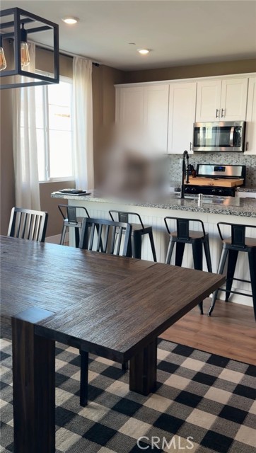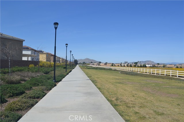 Four-bedroom, three-bath home in one of Moreno Valley’s newest, well-kept developments. Built just five years ago and shows like a model. Beautifully landscaped front and back yards, two-car garage with epoxy flooring, and a bright open great-room layout with 9-foot ceilings, fresh paint, large windows (professional shades are off but come with it), and sliding glass door to the backyard. Spacious kitchen with island, pantry, matching backsplash, and room for a full dining table, all open to the living area. One bedroom and full bath downstairs, with the primary suite upstairs featuring a walk-in closet, plus two additional bedrooms with large closets and a convenient upstairs laundry room. Located near a gated community park and the San Juan Bautista De Anza walking trail just steps away, with picnic areas, BBQs, play equipment, and sport court. Close to schools, shopping, freeway access, and Moreno Valley College. Clean, well-maintained, and move-in ready.