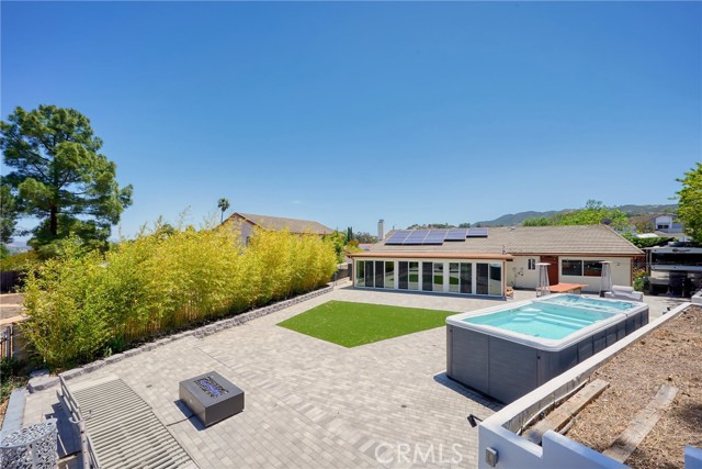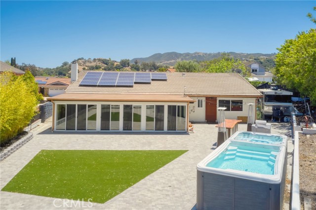 VIEWS VIEWS VIEWS!! Don’t miss out on this private, beautifully renovated 4-bedroom, 2-bath home located on a quiet hilltop cul-de-sac overlooking the serene mountain scape in Newbury Park. Enjoy incredibly beautiful sunsets and entertain in the spacious remodeled backyard featuring an outdoor bar and grill made by a local blacksmith, stunning pavers with drainage system and turf for low maintenance. Get some exercise in your 21ft Tidal Fit swim spa, relax in the hot tub and then rinse off under the custom Ipé outdoor shower. Let your guests stay overnight in the 21ft Terry Classic retro-style camper and enjoy the private succulent garden while sipping coffee on the deck by the fire pit. The house was fully renovated in 2017 and has had many upgrades throughout the years. Have peace of mind with a whole house water filtration system from Flagship, installed in 2024. Save on energy bills with the transferable solar panels. Kitchen appliances were recently updated with Z Line gas range, oven and microwave. Renovated primary ensuite in 2022 with floor to ceiling tiles, custom live edge wood vanity with a beautiful Moroccan vessel sink and LED mirrored medicine cabinet. Custom primary suite accent wall and built-in headboard with bed frame conveys. The entire house has a fresh coat of paint and is awaiting your personal touches. The 406 square foot sunroom has been fully enclosed with sliding doors all around, adding an extra living space and is currently being used as a gym. RV parking and side storage for all the extras.