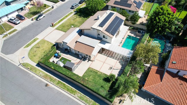 This 2960 sq.ft. home features 5 bedrooms and 3 bedrooms plus den, situated on an approximately 11,000 sq.ft. corner lot within a double cul-de-sac. Upon entry, you are greeted by a large living room with FLOOR-TO-CEILING WINDOWS that flood the space with natural light, The layout flows seamlessly into the dining area, kitchen, and a huge family room. The kitchen was recently upgraded with custom cabinets, quartz granite countertops, and matching backsplash. The layout offers a living room, dining area, kitchen, a large family room, and a separate wing containing a den/office, 3/4 bathroom, and a guest bedroom. When you go upstairs, you will find the master suite and three additional bedrooms with two full bathrooms. External and utility features include a fully paid-off solar panel system, a Tesla charger in the garage, a swimming pool, a small basketball court, and a grass area separated by doggy gates. And added bonus is that this house is within the HIGHLY-COVETED GRANADA HILLS CHARTER TRACK, INCLUDING BECKFORD ELEMENTARY, NOBEL MIDDLE, AND GRANADA HILLS HIGH SCHOOL.