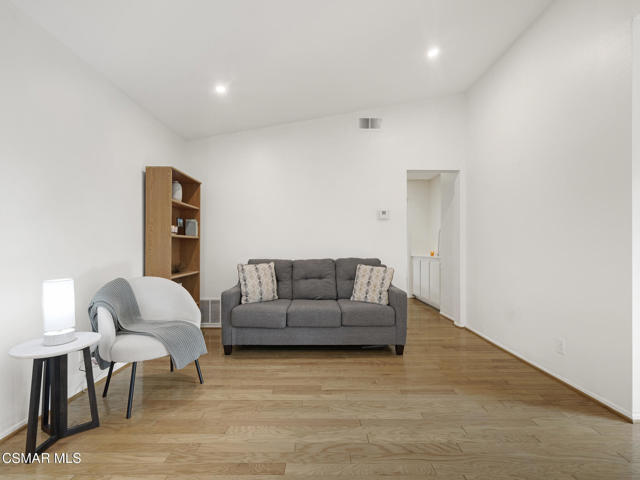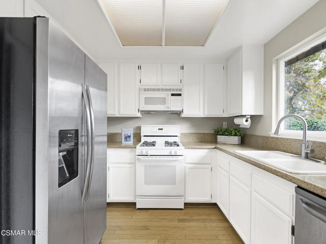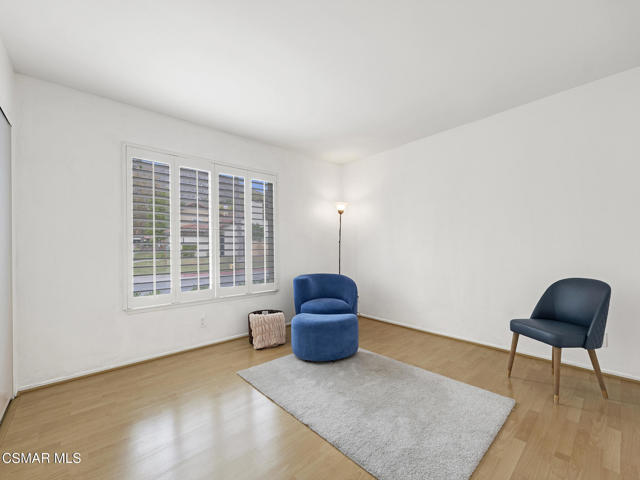 Welcome to one of Oak Park's quietest and most desirable settings--an ideal single-story retreat that offers immense privacy, peaceful surroundings, and open views of treetops and distant hills. Fully detached home and set within a charming community known for its low HOA fees, this rare residence presents a unique opportunity to own one of the few true single-level homes available in the neighborhood.Inside, the home unfolds with warmth and natural light. An inviting foyer leads to the expansive living room, where vaulted ceilings, hardwood flooring, and a classic brick fireplace with a white mantle create an elegant yet comfortable gathering space. The living room blends seamlessly with the dining area, both enjoying views of the backyard through large windows that frame the greenery outside.The adjacent kitchen is bright and cheerful, offering new top-of-the-line appliances, crisp white cabinetry, granite countertops, and a wide picture window overlooking the private backyard--perfect for enjoying morning sun and tranquil outdoor views. This open layout makes everyday living and entertaining both easy and enjoyable.Each of the home's two bedrooms functions as a private suite, complete with its own full bath--one finished with granite counters, the other with quartz. The thoughtful single-level design means no interior steps, enhanced by hard-surface flooring throughout, upgraded LED recessed lighting, dual-pane windows, central heating and air, and a durable concrete tile roof.The backyard is a wonderful extension of the home: fully fenced, private, and designed for outdoor enjoyment. A spacious patio and generous grassy area are surrounded by citrus trees and natural landscape views--an ideal space for relaxing, gardening, play, or entertaining. An attached two-car garage adds convenience and additional storage.Residents enjoy a beautifully maintained community complete with a sparkling pool and spa, front yard landscape maintenance through the HOA, and the added security of living in a nationally recognized Firewise Community. Parks, tennis courts, scenic walking and hiking trails, shopping, dining, and access to the 101 freeway are all nearby, along with award-winning Oak Park schools.Offering comfort, convenience, privacy, and an exceptional location, this special home is perfect for anyone seeking an easy, single-level lifestyle in one of Oak Park's most beloved neighborhoods.