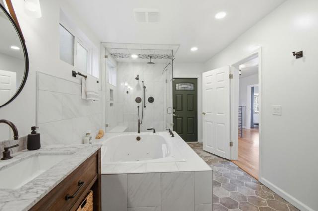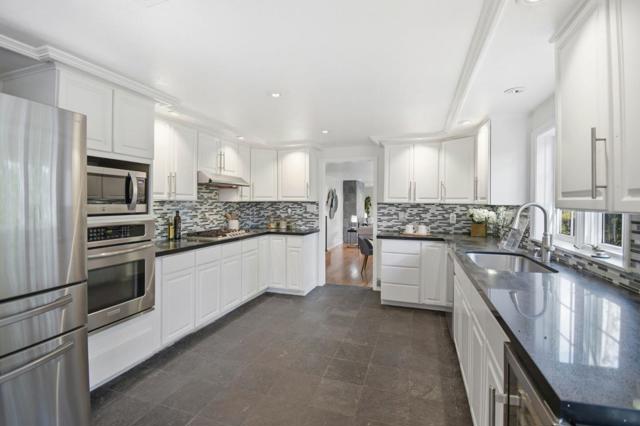 This beautiful home has been lovingly updated with an artistic eye. The gourmet kitchen boasts stainless steel appliances, dark quartz counters and oodles of cabinetry and opens to to dining room with vaulted ceilings and beams. Each room is adorned with hardwood floors, dual pane windows and a bright and light environment. The living room has a modern and inviting gas fireplace and opens to the yard where you have speakers and the ability for a projector screen. Home is outfitted with numerous Smart devices including cameras, interior and exterior lighting, smoke detectors, and climate control. The tree-filled setting is surrounded by majestic redwoods include several areas for outside entertaining, blue tile pathways, and poetic vistas. Additional features include: massive walk-in closet, cental air conditioner, heated floor in kitchen/primary suite, master bath steam shower, green house, bonus shed/office with power, raised garden boxes, finished garage with epoxy floor, tv mounts, and speakers, and wine refrigerator. Views of OCC and golf course, close to award winning Orinda schools, and easy access to downtown, shops, restaurants, Peet's and Starbucks, BART and highway 24.