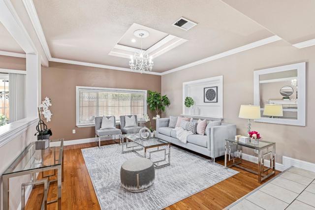 Welcome to 2698 Kendrick Cir! This beautiful 3-bed, 2-bath home offers an open floor plan and is showered with architectural details throughout. The spacious family room welcomes you with hardwood floors, crown molding, and large windows that fill the space with natural light. An open pass-through to the kitchen and a built-in TV niche add charm and functionality. The tray ceilings and crystal chandeliers in the dining area and family room enhance the space by reflecting light and adding a touch of elegance. The dining area also features a fireplace, creating an intimate atmosphere, and opens directly to the backyard through a sliding glass door leading to a covered patio and grassy yard. In the kitchen you will find granite countertops, natural wood cabinetry with glass-front accents, stainless steel appliances, tile flooring, and a peninsula with bar seating, along with a separate wet bar with a bar sink ideal for hosting. The primary bedroom offers a walk-in closet, private en-suite bathroom, and backyard access. This home is elegant, charming, and spacious. Conveniently located near shopping centers, Los Lagos Golf Course, Hwy 101, schools, and parks. Don't miss out!