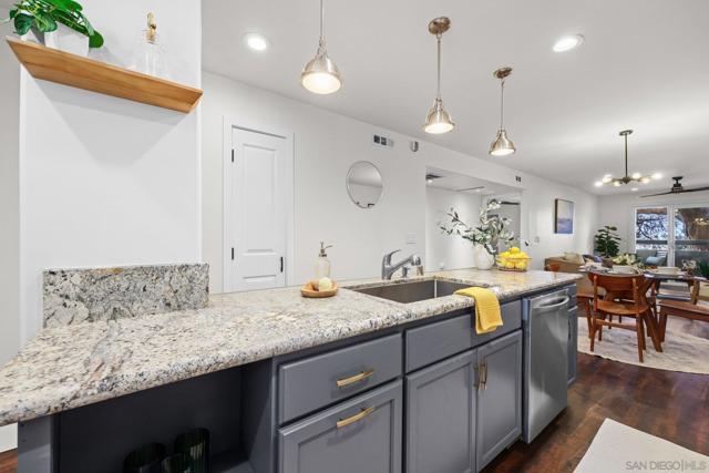 A standout opportunity to own this special move-in-ready condo in a quiet canyon-edge setting with sunset views and a charming treehouse feel. This remodeled 2-bed, 2-bath end unit home enjoys wide-open north-facing valley and west-facing sunset views from its private balcony. Inside, the home has been freshly painted and thoughtfully refreshed, creating a bright and welcoming space. The open remodeled kitchen features an island with stone countertops and flows seamlessly into the living and dining areas, enhancing the home’s airy open floor plan. The well-designed layout includes central air conditioning, in-unit laundry, ceiling fans, open floor plan, and ideal bedroom separation, while the gated entry and private 2-car tandem garage with extra storage outside provide added convenience and peace of mind. What truly distinguishes this home is its location...tucked away in a quiet pocket removed from the dense urban feel typical of many nearby condos, yet just a whisper away from the vibrant bar, restaurant, and cafe' scene of Hillcrest and University Heights to the west, and to the shops of the Adams Ave corridor to the east, with easy freeway access nearby. Also just a couple of blocks from the popular Trolley Barn Park! The result is the best of central San Diego living while preserving a rare sense of privacy and calm at home. An exceptional opportunity to enjoy beautiful views, a private balcony, lower HOA fees, and an outstanding central location...all in an affordable home that feels worlds away from the city while remaining right in the heart of it. A standout opportunity to own a beautiful, move-in-ready condo in a quiet canyon-edge setting with sunset views and a charming treehouse feel. This beautifully remodeled 2-bed, 2-bath end unit home enjoys wide-open north-facing valley and west-facing sunset views from its private balcony. Inside, the home has been freshly painted and thoughtfully refreshed, creating a bright and welcoming space. The open remodeled kitchen features an island with stone countertops and flows seamlessly into the living and dining areas, enhancing the home’s airy open floor plan. The well-designed layout includes central air conditioning, in-unit laundry, ceiling fans, open floor plan, and ideal bedroom separation, while the gated entry and private 2-car tandem garage with extra storage outside provide added convenience and peace of mind. What truly distinguishes this home is its location...tucked away in a quiet pocket removed from the dense urban feel typical of many nearby condos, yet just a whisper away from the vibrant bar, restaurant, and cafe' scene of Hillcrest and University Heights to the west, and to the shops of the Adams Ave corridor to the east, with easy freeway access nearby. Also just a couple of blocks from the popular Trolley Barn Park! The result is the best of central San Diego living while preserving a rare sense of privacy and calm at home. An exceptional opportunity to enjoy beautiful views, a private balcony, lower HOA fees, and an outstanding central location...all in an affordable home that feels worlds away from the city while remaining right in the heart of it.