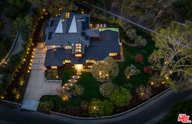 Introducing Three Planes, an extraordinary new 11,000 sq ft modern equestrian estate by acclaimed designer Jae Omar, set on over an acre in the exclusive gates of Hidden Hills. Inspired by the Chumash people and their deep connection to nature, the home is a rare fusion of bold architecture, organic materials, and intentional design. The residence offers 5 bedrooms and 6.5 bathrooms, with the luxurious primary suite and three secondary bedrooms located upstairs, each with its own ensuite bath. A dedicated wellness and entertainment wing features a gym, private spa, media room, wine cellar, and wet bar. The chef's kitchen with breakfast nook and walk-in pantry flows effortlessly to grand living and dining spaces under soaring, beamed ceilings. Outdoors, discover a resort-style pool and spa, firepit, outdoor kitchen, yoga deck, and a detached barn perfectly honoring Hidden Hills' equestrian heritage. Every detail is crafted to inspire, making Three Planes as much an artistic statement as it is a private sanctuary.