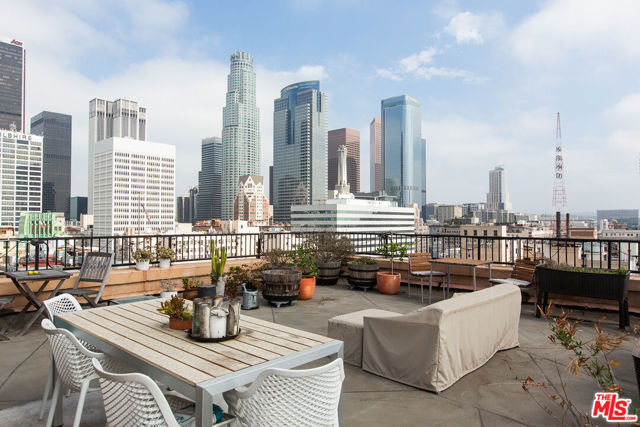 Welcome to your own private escape in the sky at the historic Bartlett Building in Downtown Los Angeles. Unit #1301 is a higher-floor, corner one-bedroom loft offering sweeping views that stretch to the west over the dazzling Downtown skyline and north toward the iconic Los Angeles City Hall. If you're looking for a home that blends historic character, architectural charm, and modern updates, this loft delivers it all. Step inside and you're immediately greeted with soaring ceilings of approximately 12 feet, massive original industrial-style windows that flood the space with natural light, and details that speak to the building's 1911 Beaux-Arts origins. Exposed brick walls and polished concrete floors add to the authentic loft aesthetic, creating an atmosphere that feels both dramatic and welcoming. Unlike many open lofts in the city, this home features a true enclosed bedroom, giving you the privacy you want without compromising the expansive, airy feel of the space. The floor plan also naturally separates the bedroom area from the living and entertaining spaces, making the layout both functional and versatile. The updated galley-style kitchen is compact yet highly functional, outfitted with stainless steel appliances, a full-size refrigerator, plentiful cabinetry, and ample counter space for cooking or entertaining. The bathroom includes a larger soaking tub, modern tile, and updated fixtures, making it an inviting place to relax and unwind. To complete the package, a full-size washer and dryer are located in-unit, an invaluable convenience in the heart of Downtown.As a resident of the Bartlett, you'll enjoy an array of amenities that enhance both lifestyle and peace of mind. The building offers 24/7 front desk security, plentiful rentable storage space, a landscaped third-floor outdoor courtyard perfect for a quiet break, and a rooftop deck with jaw-dropping 360-degree views of the Downtown skyline and beyond. Whether it's sunrise yoga, sunset cocktails, or simply taking in the sparkling city lights, the rooftop offers one of the most impressive vantage points in all of DTLA. Another exceptional benefit of ownership at the Bartlett is the Mills Act designation. This coveted status provides significant annual property tax savings, which can add up to thousands of dollars per year, making this loft not only a stunning home but also a smart investment. Parking is not deeded with this unit; however, secure on-site parking is available for rent, and additional nearby options make commuting and car ownership easy if needed. Living at 215 W 7th St places you in the heart of the Historic Core, just steps from some of the city's most celebrated restaurants, bars, coffee shops, and cultural landmarks. Whether you're in the mood for fine dining, live music, a gallery opening, or just a quiet coffee around the corner, everything you could want is within a short walk. The neighborhood also offers convenient access to Metro stations and freeways, connecting you easily to the rest of Los Angeles. Unit #1301 at the Bartlett Building is more than just a loft, it's a lifestyle. With historic charm, modern updates, breathtaking city views, and access to all that Downtown has to offer, this property represents a rare opportunity to own a true piece of Los Angeles history while enjoying the best of contemporary urban living.