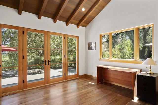 Privately positioned on approximately 1.85 acres with unobstructed views of Jasper Ridge Biological Preserve, this custom-built home offers a rare sense of serenity and seclusion just minutes from town. The setting is truly exceptional - vast, mostly level grounds bordered by open sky and native landscape. Designed for indoor/outdoor living, the home features an expansive flagstone terrace and covered front porch, along with a secluded rear terrace and spa - all surrounded by the natural beauty of Woodside and Portola Valley. A striking architectural presence is established with its signature shaped parapet, handcrafted detailing, and richly hued finishes inspired by classic Spanish Revival style. Inside, the warmth continues with red birch floors, wood-paneled cathedral ceilings, and hand-selected tilework from Walker Zanger. Every room captures the views, and the kitchen is appointed for serious cooking with premium appliances, a walk-in pantry with wine storage, and an open connection to the indoor/outdoor dining room. Moments from hiking and biking trails, top-rated schools, and local amenities, this is a home that lives like a country retreat yet remains just minutes from the heart of town and Highway 280.