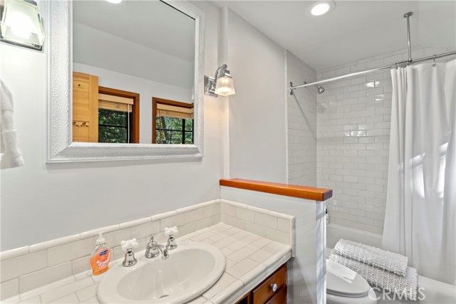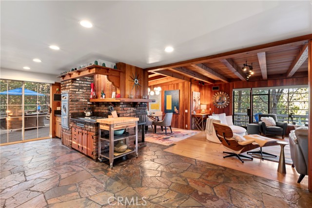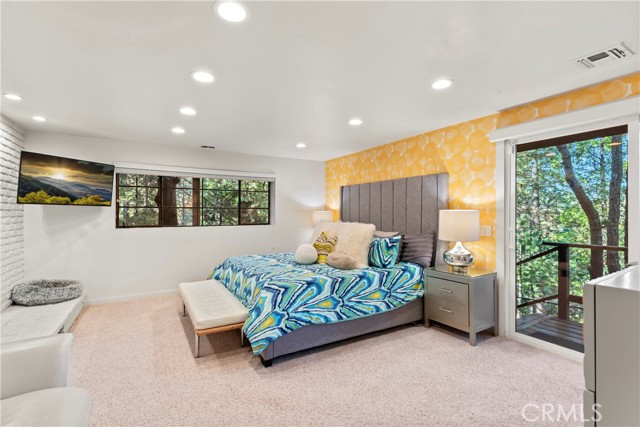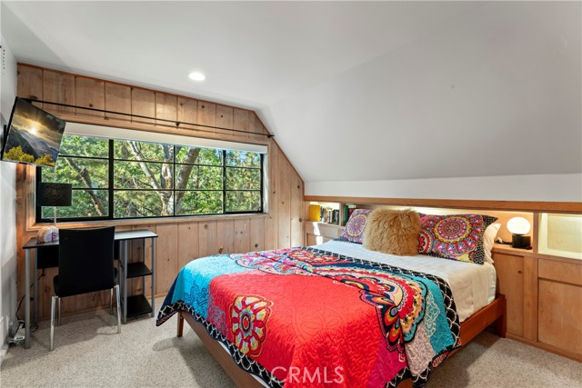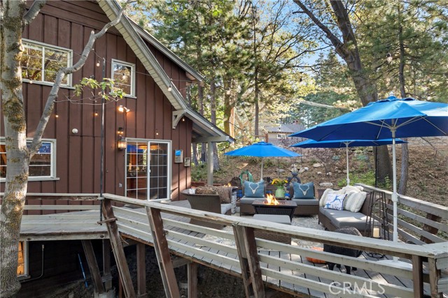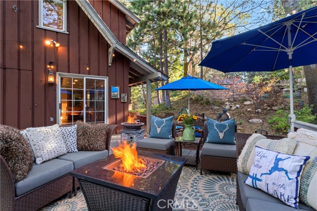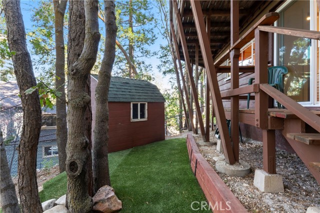 Turnkey Postcard Vintage Charmer located in Arrowhead Woods inclusive of Lake Rights with all the Bells and Whistles while simultaneously Boasting All of The Emotional Essence that the Lake Arrowhead Lifestyle has to offer including a Peek of the Lake! Main Mid-Level Features: Dutch Door Entry, Flagstone Flooring, Granite Kitchen Counters, Vintage Robert Shaw Wester Holly Stainless Steel Oven, Sportsman 4x4 Free Standing Butcher Block, 8 Foot Wood Beamed Ceilings, 3/4 Bath and Laundry Combo, Open Kitchen to Dining Area with Fireplace to Living Room with multiple access to Overflow Outdoor Entertaining Patios. Upper-Level Features: Expansive Open Clear Fir Staircase from Living Room to 3 Comfortable Cozy Bedrooms and Full Bathroom. Lowest Level Features: Spacious Primary Bedroom Ensuite with Brick Fireplace, Soaking Tub, with Access to fenced back yard area astro-turfed for the Pets. Other Features & Upgrades Include: Pex-Plumbing Conversion, Classic Steel Encasement Windows, Whole House Auto Natural Gas Generac Generator, Full Air Conditioning, Whole House Fan, Outdoor Shower, Propane Fire Pit, Monitored Security System, Multiple Cameras, Rear Storage Shed, Wood Enclosure Receptacle for Trash, Partial Sprinklers and Exterior Landscape Lighting.