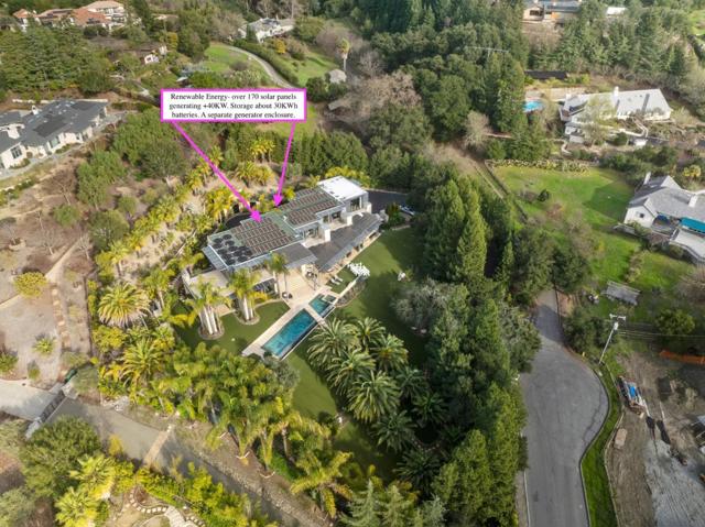 Motivated sellers! PrivateResortLiving. Los Altos Hills with Palo Alto Schools! Features eight bedrooms and 11 bathrooms, including a guest house/ADU with a full kitchen, living room, and separate entrance, built in 2022. It offers a formal dining room, a grand living room, limestone terraces, balconies, lush landscaping with over 20 palm trees, waterfalls, a home theater with 16 leather recliners, a wine cellar, an elevator, a fully equipped gym, and five-car garages with EV charging stations. Outdoor Amenities include an infinity Pool, BBQ, SportCourt, terraces and balconies, Limestone finishes, and a solar system. Perfect for TechExecutives and GlobalBuyers, the outdoor spaces are designed for unforgettable moments, whether hosting summer parties or unwinding on a peaceful evening under the stars. Quick access to Meta, Google, Apple, SFO, SJC, Stanford, Stanford University. Brand-new TPO roof with a 25-year warranty.