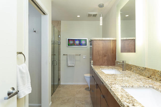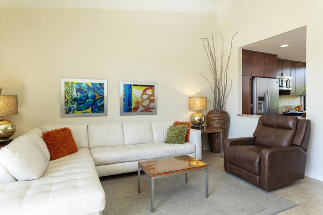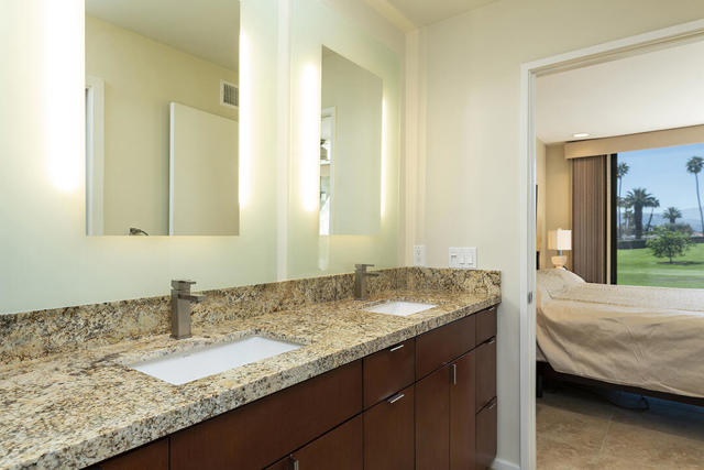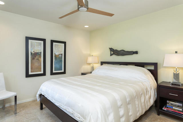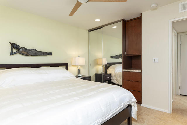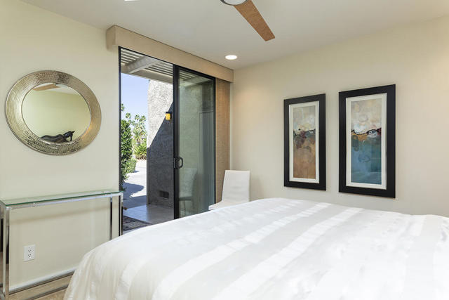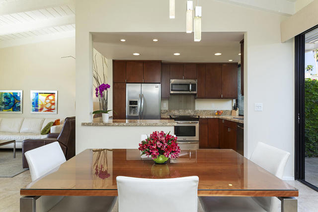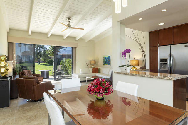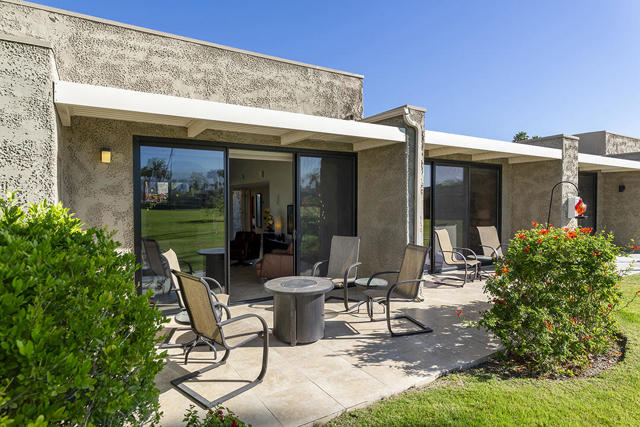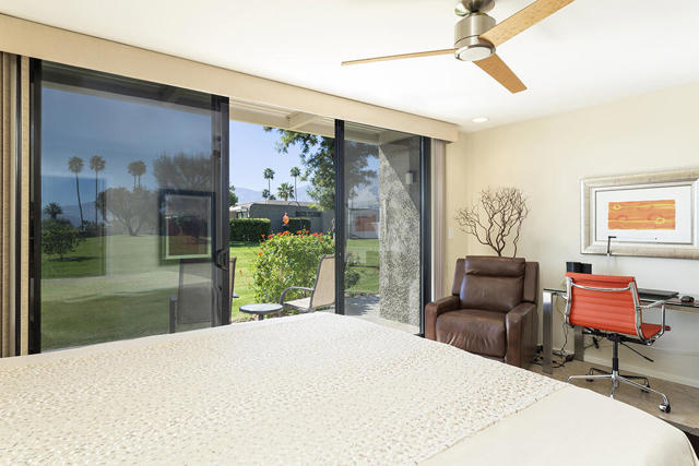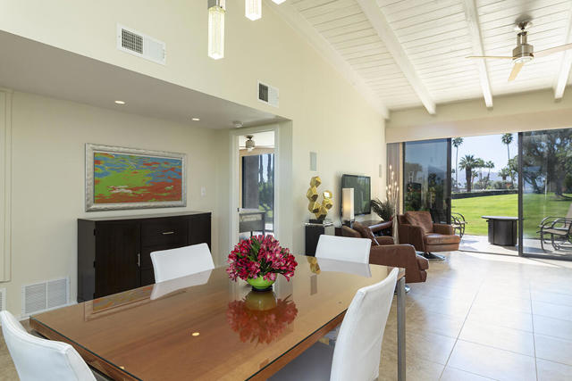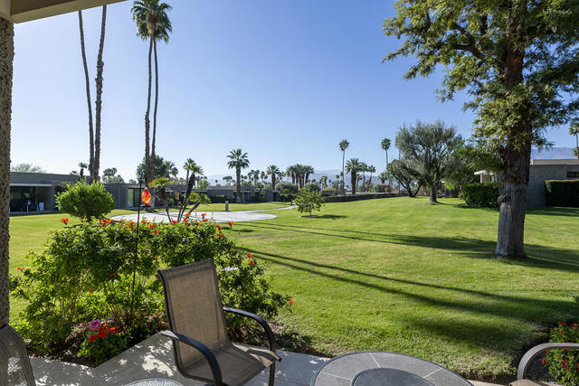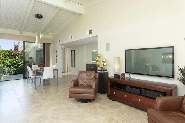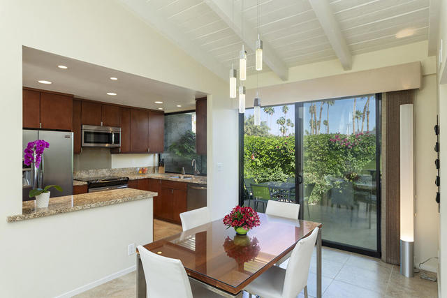 Located in the desirable Sunrise Oasis community in Palm Springs, this single-level two-bedroom, two-bathroom condo with two outdoor patios offers million-dollar views, bright living spaces, and an excellent central Palm Springs location. The updated interior features beamed tongue and groove ceilings in the living room, tile flooring throughout, and a beautifully designed kitchen that anchors the open-concept main living area. Sliding doors open from the living room to the rear patio, allowing for an effortless indoor and outdoor flow and capturing the panoramic views.The floor plan provides excellent separation of bedrooms for privacy and comfort. The spacious primary suite is to the rear of the home and, like the open living area, enjoys access to the rear patio and mountain views. This bedroom includes an updated bathroom with a double vanity and glass-wall shower as well as a large walk-in closet. The guest bedroom also opens to nature with sliding doors to the lush private front patio which also provides a western view. This cozy room has easy access to the beautifully appointed hall bath.In addition to the full remodel completed in 2013, several recent upgrades provide added value and peace of mind, including the replacement of the HVAC system (2024), an updated electrical panel (2025), the replacement of the foam roof (2024), soundproofing the living room wall (2023), and updating the exterior ramadas for additional shade (2022). The home also includes a one-car garage with a washer and dryer and is close to one of the community's three pools.Sunrise Oasis is a low-density Palm Springs community on fee land (land you own, no land lease) featuring three pools, tennis and pickleball courts, all located just minutes from downtown Palm Springs restaurants, shops, entertainment, and nightlife.Additional Items and Amenities Foam roof and the boards beneath replaced | 2024 Replaced heat pump, HVAC system and thermostat | 2024 Electrical panel replaced | 2025 Garage door and door opener replaced | 2024 Replaced exterior closet doors in side and rear patio | 2023 Window tinting applied to all south facing windows | 2023 Living room wall sound proofed | 2023 Ramadas (trellis) above all external sliders replaced | 2022 HOA repainted exterior of building | 2022The HOA dues includes maintenance of common areas and landscaping, three pools, tennis courts, pickleball courts, trash, water.