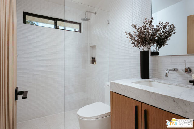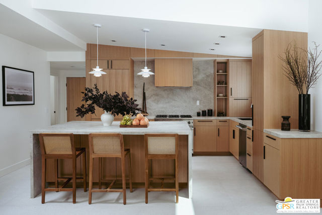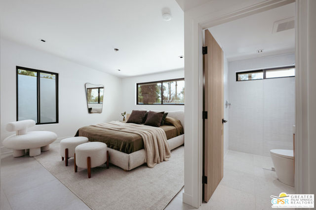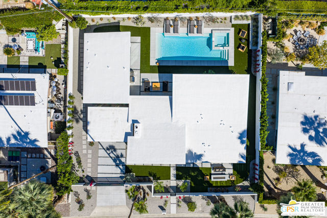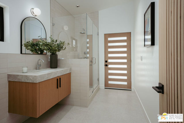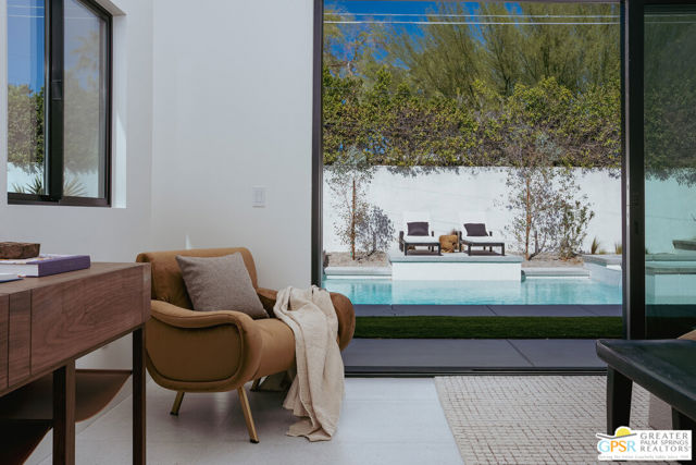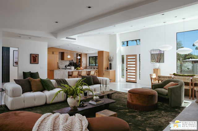Originally built in 1957 and completely reimagined for modern living, this striking Sunrise Park residence offers the rare opportunity to enjoy the architectural spirit of mid-century Palm Springs with the confidence of new construction. Taken down to the studs and extensively redesigned, the home features soaring 12-foot vaulted ceilings, expansive walls of glass, and a seamless indoor-outdoor flow that frames dramatic mountain views. The 3-bedroom, 3-bathroom main residence is complemented by a beautifully appointed detached casita offering 2 bedrooms, 1 bath, and its own living space ideal for guests and family, or premium short-term rental flexibility. Every system has been rebuilt or replaced, including plumbing, electrical, gas lines, HVAC, roof, windows, and doors. Interiors balance warm natural materials with clean architectural lines, creating spaces that feel comfortably chic and effortlessly livable. Fully walled and gated, the outdoor living spaces are anchored by a newly constructed resort-style pool and spa, lounging platforms, and multiple outdoor entertaining areas designed to create a compound-like feel. With 2,630 square feet of living space in one of central Palm Springs' most desirable neighborhoods and full short-term rental eligibility this home offers exceptional flexibility as a private retreat, luxury second home, or high-performing investment property.