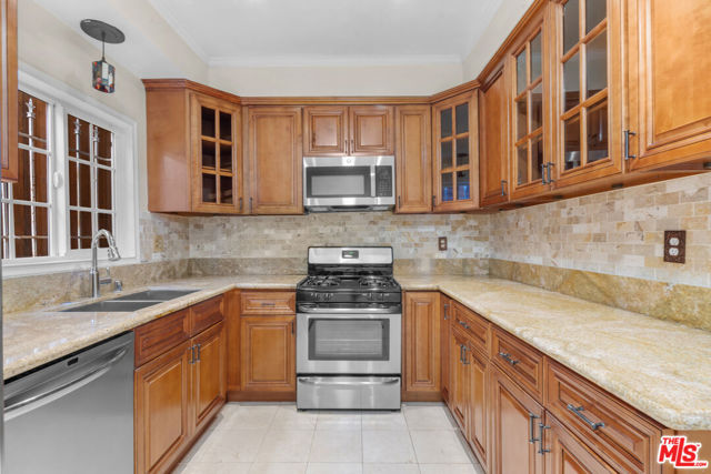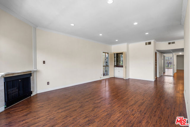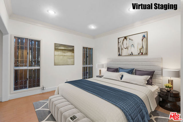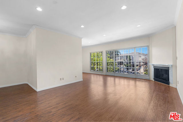Fall in love with this bright, sun-drenched condominium in the lovely Windsor Village neighborhood, located in a charming boutique complex of only 9 units. This front-facing residence enjoys abundant natural light and peaceful treetop and walk-street views, creating an open, airy atmosphere throughout. The spacious living room features high ceilings, a cozy gas fireplace, and French doors that open to a private balcony, perfect for enjoying the tranquil surroundings. The extended balcony is one of the few in the building and provides a longer layout. Wood floors, recessed lighting, and an in-unit laundry add comfort and convenience. A formal entry leads to a generous living and dining area, complemented by ample closet space throughout the home.The versatile den offers flexible use as a home office, family room, or additional guest space. The spacious primary bedroom includes an en-suite bathroom and a walk-in closet.Additional highlights include a private garage with two tandem parking spaces, a valuable feature as not all units in the building include two parking spaces. In addition, the unit is not located on the ground level. Low HOA dues add to the appeal.Ideally located near Harold A. Henry Park, Larchmont Village, The Ebell Theatre, and the Marciano Art Museum, with convenient access to the Wilshire/Western Metro, major freeways, restaurants, shopping, and entertainment. Lovingly owned and maintained by the same owner for over 30 years, this is the first time the home has been offered on the market in decades. With just a few personal updates, this light-filled residence offers tremendous potential to make it truly your own.