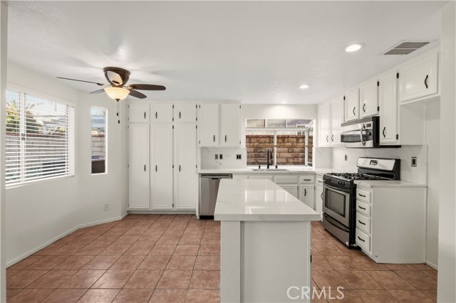 Beautifully updated and move-in ready, this nearly 2,000 sq ft Canyon Country home offers 3 bedrooms, 3 bathrooms, and a versatile loft that works perfectly as a home office, media space, or playroom. The remodeled kitchen is the heart of the home, featuring gorgeous quartz countertops, recently updated cabinetry, and plenty of space for cooking and gathering. All three bathrooms have been refreshed with new quartz countertops and stylish light sconces, giving the home a clean, modern feel throughout. Comfort and efficiency are covered with a newer HVAC system, while the thoughtful layout provides great flow and functionality for everyday living. Outside, the fenced front yard adds charm and privacy, and the low-maintenance backyard offers the perfect space to relax or entertain without the upkeep. A great opportunity for anyone looking for an updated home with flexible living space and modern touches.