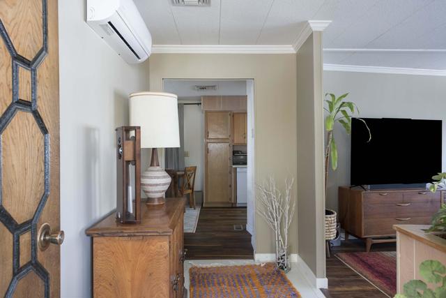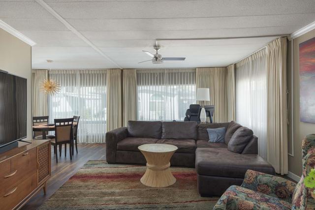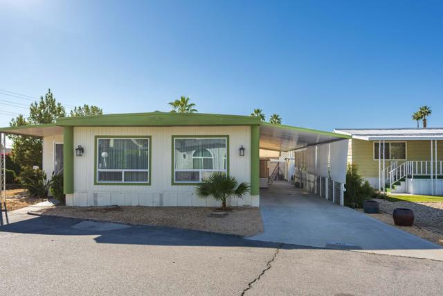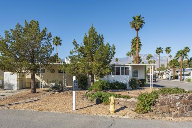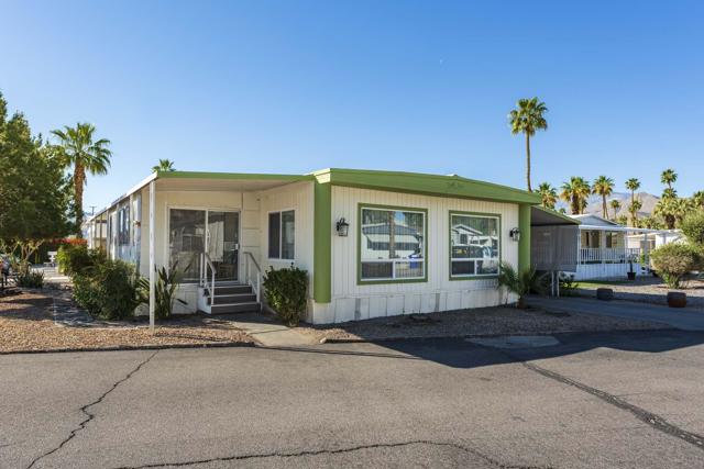 Check out this nicely updated Royal Palms Mobile in Central Cathedral City. This 1969 Royal Lancer Model has 2 Bedrooms & 2 Baths featuring a large corner lot with extra parking. As you enter, you have a nice Sun room that leads to the 1368 sq. feet of living space. The Dual Pane windows were replaced in '22 and 3 Split A/C units installed in '23. The exterior has been painted in 2026 ! There is a large combo Living Room and Dining Room area, which leads to the galley kitchen with a full array of white appliances. The original Formica countertops are in excellent shape. The flooring has been replaced with a rich and warm laminate throughout. The rear oversized Primary Suite has dual sinks and a nice walk-in shower. The guest bedroom has closet space and separate bath with step-in shower. There is a full-sized Washer/Dryer in Hall closet. The new foam roof has been installed recently and there is ample parking for two cars of off street parking in carport. There are also two storage sheds for extra storage needs. Royal Palms monthly lot rent starts around $890 and will need to qualify as a resident with Application from the onsite office. There are many onsite amenities to include putting green, sports courts, shuffleboard lanes, clubhouse with pool and spa. This property is being sold furnished per inventory, priced well to sell so Make an OFFER !!