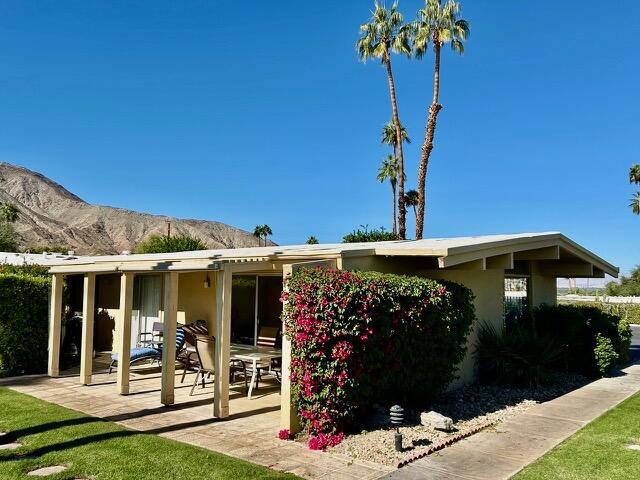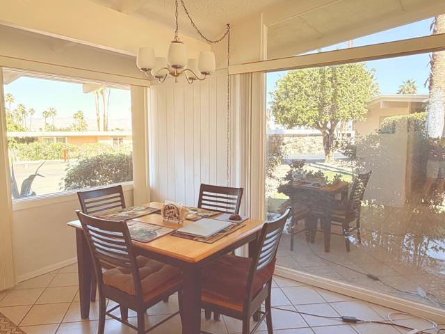 Prime interior Location! South-Facing patio with Breathtaking Mountain Views! Fabulous Mid-Century Modern Condo. Price to Sell!This single-level Mid-Century Modern condo is located just a few blocks from the world-famous El Paseo shopping and dining district. Designed with a fun, contemporary flair, this home perfectly blends classic desert architecture with modern style.Stunning walls of glass seamlessly bring the outdoors in, filling the home with natural light while showcasing the lush greenbelt, sparkling pool, and breathtaking mountain views. Enjoy effortless indoor/outdoor living with a generous patio, perfect for relaxing or entertaining.The community features a refreshing pool just steps away, along with mature citrus trees including lime, lemon, orange, and ruby red grapefruit for residents to enjoy.Additional upgrades include a roof, a 4-ton HVAC system, updated electrical panel, upgraded copper plumbing lines, and updated washer and dryer.HOA has remodeled the pool and re-paved the driveways! The Architectural Committee has approved beautification of the landscaping.Offered Turnkey Furnished!You'll love the vibrant light, stunning mountain views, and timeless design of this Mid-Century gem--truly desert living at its best!