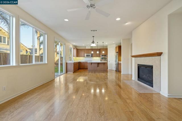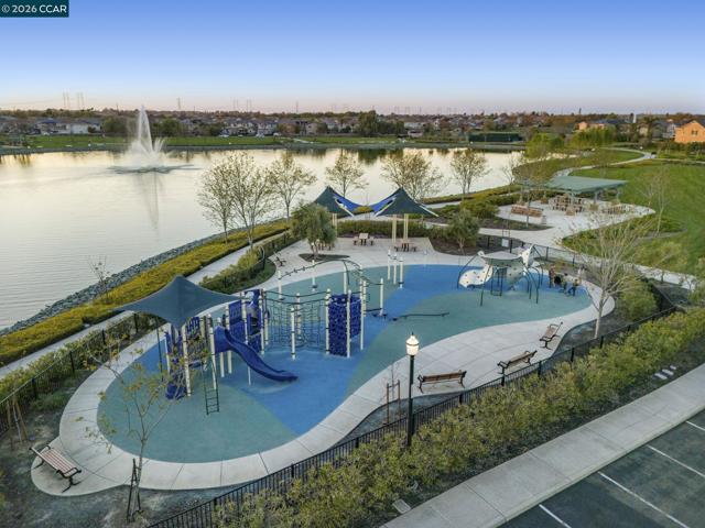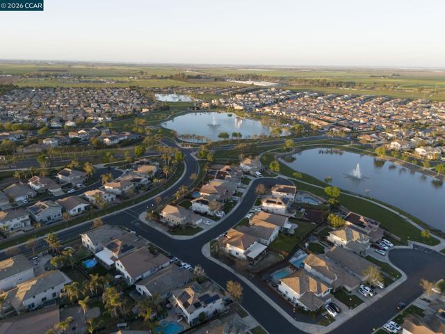 Located in the sought after gated community of The Lakes in Discovery Bay, this spacious 5+ bedroom, 3.5 bath, plus bonus room 2 story home offers 3333sf of living space. The open and expansive floor plan has 1 bedroom, 1.5 baths, and a bonus room located on the first floor. Living room/dining area at the front of the house is separated from the family room kitchen combo at the rear. There is ample kitchen cabinetry and counter space, an island, and a pantry closet. The upstairs primary bedroom is large, and has an en suite bathroom with 2 walk in closets, a newly remodeled shower booth, dual vanities, and separate tub. The house has a 2 car main garage, and there is a 3rd separate garage bay so parking and storage is well covered. The community has 24 hour gated security and patrols, and there are community amenities that have basketball courts, tennis courts, a baseball diamond, and bocce ball courts. In addition there are ample walking paths, landscaped green spaces, and community picnic/BBQ areas, and several man made lakes with walking trails.