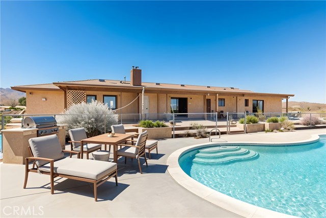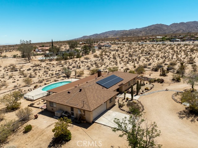 The Homesteader Estate at Indian Cove Canyon Rare High Desert compound on 2.92 acres featuring two homes, a pool, and a buildable lot just minutes from the entrance of Joshua Tree National Park — offering incredible potential as a private desert retreat, family estate, or income-producing property. Originally built in 1990 by one of the area’s early homesteading families, the 2,917 sq ft main residence embodies timeless Southwestern Ranch-style living with expansive spaces designed for comfort and entertaining. The home features four spacious bedrooms, including two private primary suites located on opposite wings, each with its own entrance—ideal for guests, extended family, or flexible living arrangements. Three full bathrooms include a walk-in shower, shower/tub combo, and a relaxing deep jetted soaking tub. The chef’s kitchen and dining room open to a welcoming front veranda, creating the perfect setting for sunset dinners overlooking the canyon landscape. Outside, enjoy a beautiful full-size swimming pool surrounded by sweeping desert views and star-filled night skies. Comfort is maintained year-round with dual evaporative coolers, new central heating, and a cozy gas/wood-burning fireplace for cool desert evenings. Recent upgrades include:• New roof• Pool resurfacing with new pump and filter• Two gas water heaters• New garage door opener. A finished two-car attached garage with workshop and mudroom provides additional functionality for storage, projects, or desert gear. Also included is a separate guest house with its own private driveway, originally built in 1935, featuring 1 bedroom, 1 bath, warm wood paneling, a spacious kitchen, living room, and breakfast bar, along with its own septic system. This charming structure offers excellent possibilities as an artist studio, guest retreat, or potential short-term rental. The property also includes an additional .57-acre parcel to the south, creating a rare opportunity for future development with utilities available at the street. Located just minutes from Indian Cove Campground, one of the most spectacular hiking and climbing areas in Joshua Tree National Park, the property offers a unique blend of history, privacy, and investment potential. With multiple dwellings, acreage, and a prime location near the park, The Homesteader Estate presents an exceptional opportunity to create a family retreat, desert compound, or income-producing Hi Desert getaway.