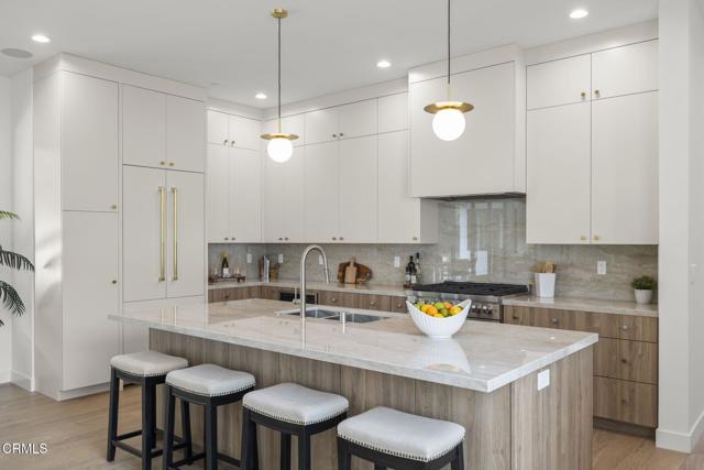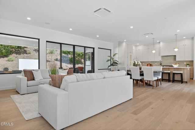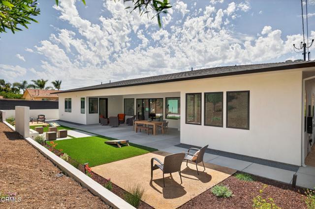 Rare opportunity to own brand-new construction in Ventura's ultra desirable Ondulando neighborhood. This stunning single-story home offers an open floor plan with white oak hardwood floors throughout, ten foot ceilings, and seamless indoor-outdoor living. The chef's kitchen features top-of-the-line stainless steel appliances, walk-in pantry, and a striking 9-foot island, opening to a spacious living room with a 74' WiFi-enabled color-changing LED fireplace. The 4-bedroom, 4-bathroom split-wing layout includes two luxurious primary suites, each with spa-inspired bathrooms and private access to the covered patio. Additional highlights include an oversized laundry/mud room with ample storage, and a two-car garage with epoxy flooring. Designed for efficiency and comfort with zoned mini-split heating and cooling, integrated solar pre-wired for battery backup, EV charging readiness, Halo 5 whole-house water filtration, and smart home features including Ring doorbell and Sonos sound system with iPad control. The private backyard is an entertainer's dream with multiple seating areas, outdoor kitchen, fire pit, and tranquil fountain--perfect for year-round California living. Don't miss out... this is THE ONE and WILL NOT LAST!