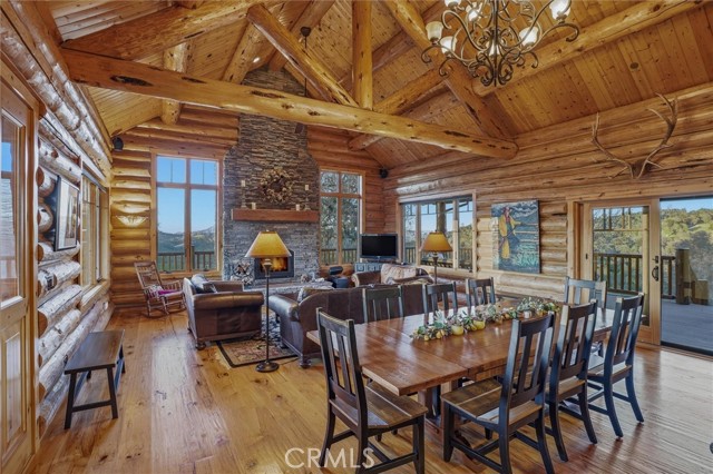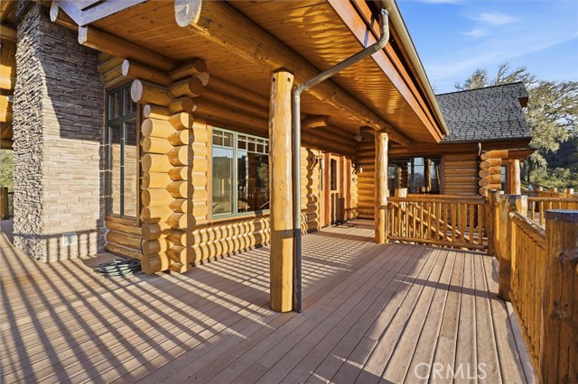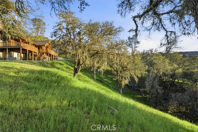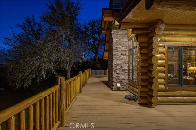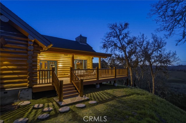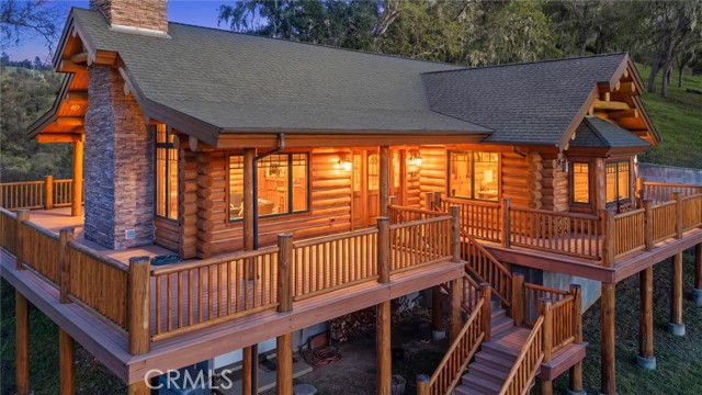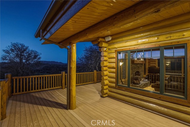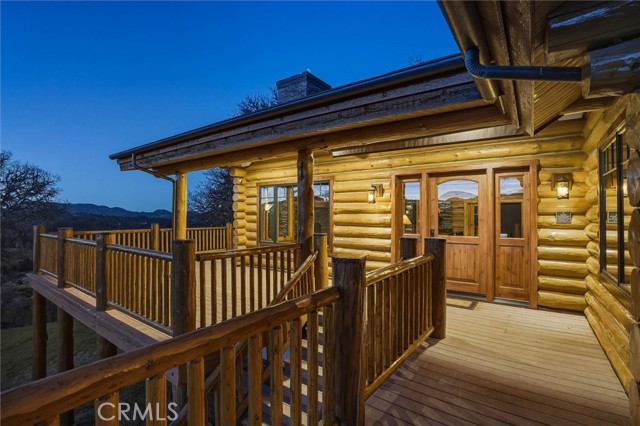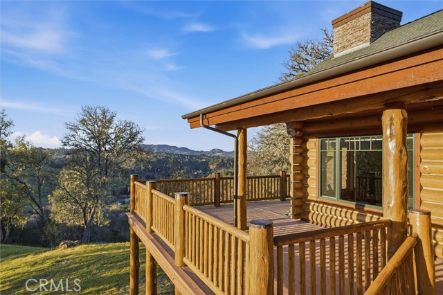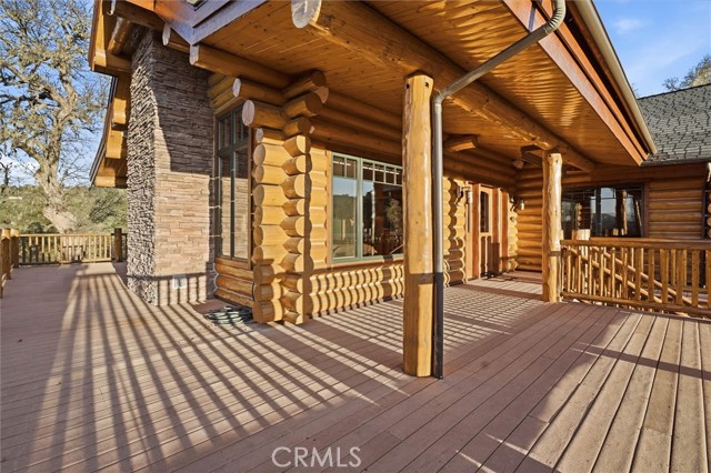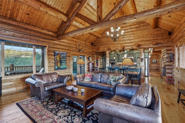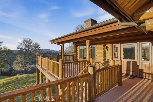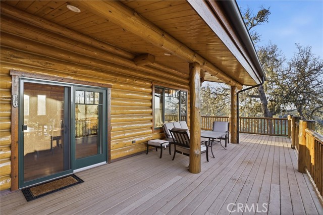 Offered for the first time, Rancho Tres Robles captures the essence of Central Coast living. This custom two-bedroom, two-bath fully furnished Alpine log home is nestled among the treetops, offering panoramic unobstructed views. An expansive wraparound deck provides the perfect setting to take in Paso Robles’ legendary sunsets and star-filled nights. Each log of the home was hand-hewn and saddle-notched, showcasing exceptional craftsmanship throughout. Inside, warm wood floors, soaring ceilings, expansive picture windows, and custom cabinetry create a rich, inviting atmosphere in every room. Multiple doors open to the wraparound deck, seamlessly blending indoor and outdoor living and nearly doubling the entertaining space. The expansive great room, anchored by an Xtrordinair wood-burning fireplace, offers a warm and welcoming setting for both lively gatherings and quiet evenings at home. The chef’s kitchen is beautifully appointed with double ovens, custom cabinetry, a large granite island, and a six-burner Thermador range with a built-in pot filler. Two spacious bedrooms are thoughtfully positioned on opposite sides of the home to provide privacy, including a serene primary suite with an en suite bath and walk-in closet. A side entrance off the porte cochère leads to a mudroom and laundry area which is perfect after a day spent hiking or enjoying the lake. The property also offers a full attic with pull-down ladder and a large basement, ideal for additional storage or a future wine collection. The property also includes a strong producing well, backup generator, and a portable fire hose system for added peace of mind. Located within the gated community of Running Deer Ranch, residents enjoy private launching dock access to Lake Nacimiento. You are just moments from Justin Winery and other renowned Adelaida district wineries, making this an exceptional wine country retreat.