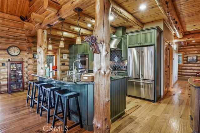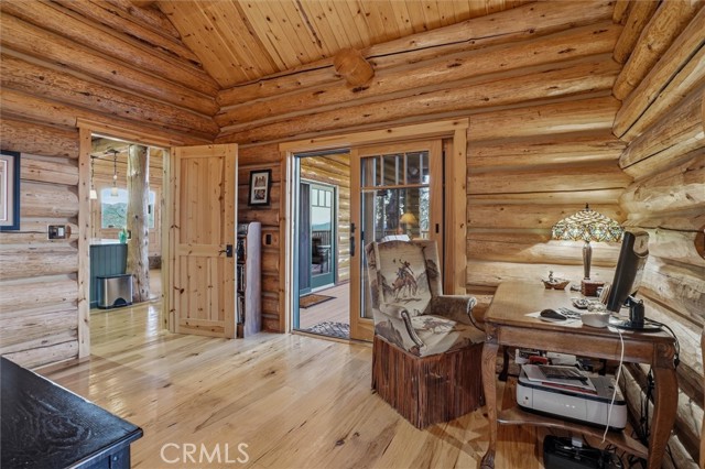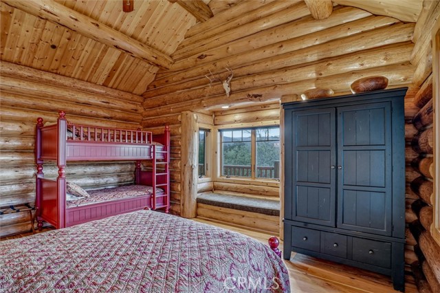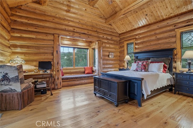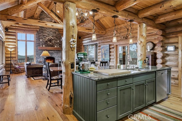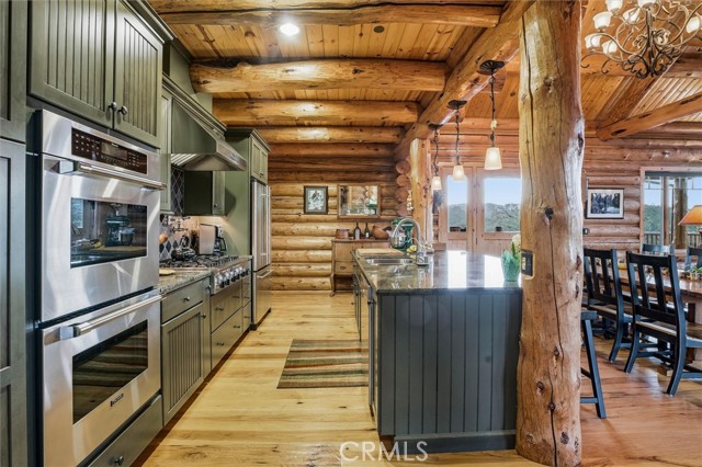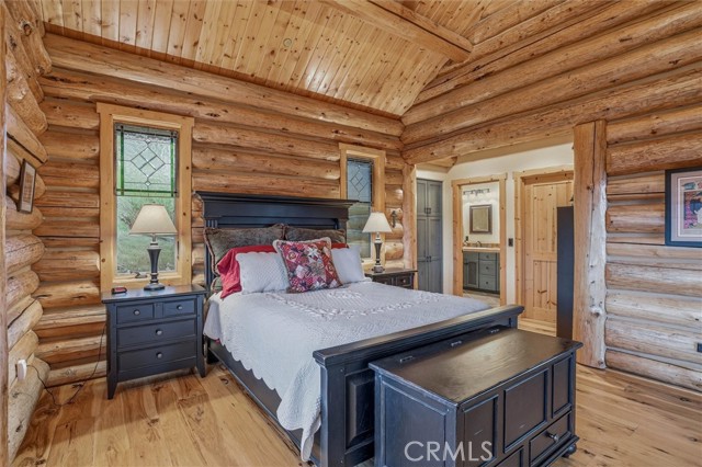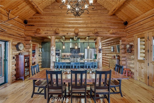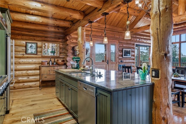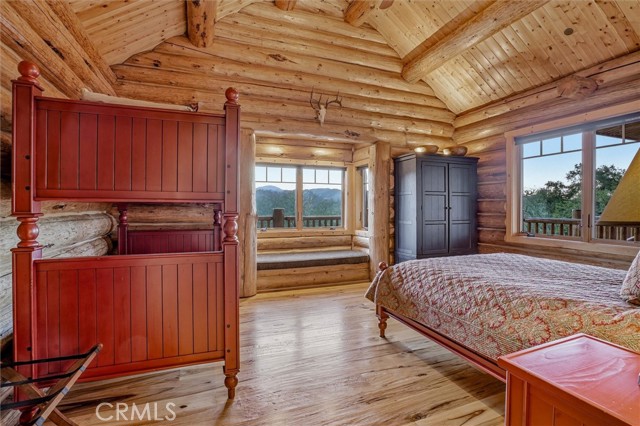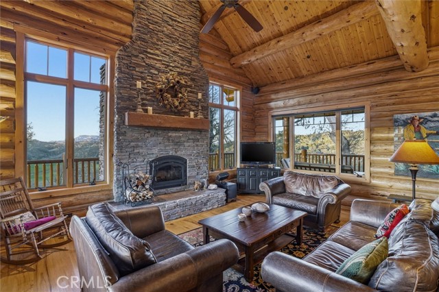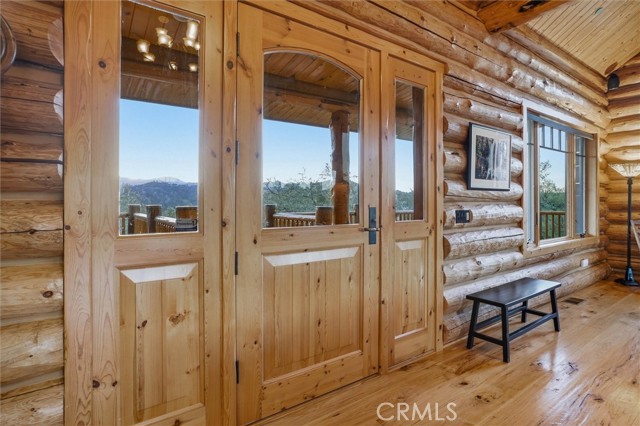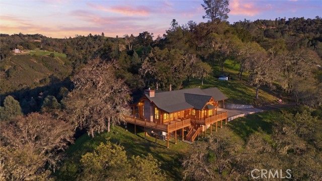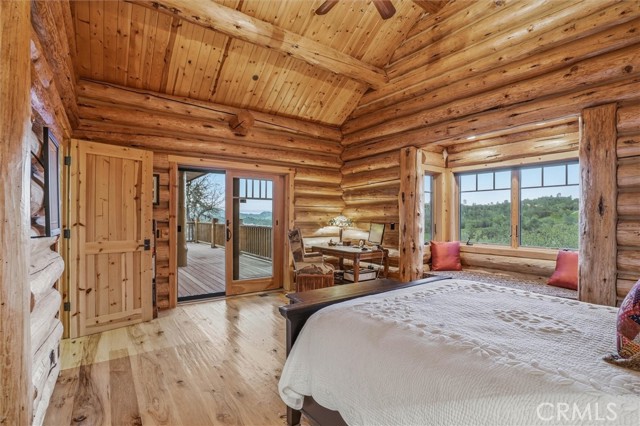 Offered for the first time, Rancho Tres Robles captures the essence of Central Coast living. This custom two-bedroom, two-bath fully furnished Alpine log home is nestled among the treetops, offering panoramic unobstructed views. An expansive wraparound deck provides the perfect setting to take in Paso Robles’ legendary sunsets and star-filled nights. Each log of the home was hand-hewn and saddle-notched, showcasing exceptional craftsmanship throughout. Inside, warm wood floors, soaring ceilings, expansive picture windows, and custom cabinetry create a rich, inviting atmosphere in every room. Multiple doors open to the wraparound deck, seamlessly blending indoor and outdoor living and nearly doubling the entertaining space. The expansive great room, anchored by an Xtrordinair wood-burning fireplace, offers a warm and welcoming setting for both lively gatherings and quiet evenings at home. The chef’s kitchen is beautifully appointed with double ovens, custom cabinetry, a large granite island, and a six-burner Thermador range with a built-in pot filler. Two spacious bedrooms are thoughtfully positioned on opposite sides of the home to provide privacy, including a serene primary suite with an en suite bath and walk-in closet. A side entrance off the porte cochère leads to a mudroom and laundry area which is perfect after a day spent hiking or enjoying the lake. The property also offers a full attic with pull-down ladder and a large basement, ideal for additional storage or a future wine collection. The property also includes a strong producing well, backup generator, and a portable fire hose system for added peace of mind. Located within the gated community of Running Deer Ranch, residents enjoy private launching dock access to Lake Nacimiento. You are just moments from Justin Winery and other renowned Adelaida district wineries, making this an exceptional wine country retreat.