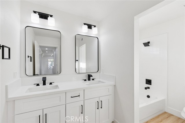 Turn-key renovated two-story home located in the desirable community of Newhall. This spacious 4-bedroom, 3-bathroom home offers a functional floor plan with one bedroom and full bathroom conveniently located downstairs, perfect for guests or multi-generational living. Upon entry, you’re welcomed by a bright and open family room featuring vaulted ceilings that create an airy and inviting space. The family room flows seamlessly into the kitchen and living area, making it ideal for everyday living and entertaining. The kitchen features a center island and easy access to the main living spaces. Recent upgrades throughout the home include new laminate flooring, new carpet, and a brand new HVAC system for year-round comfort. Upstairs, the primary suite offers a beautifully renovated bathroom complete with a new soaking tub, separate standing shower with updated fixtures, and a modern vanity. The backyard is designed for relaxation and entertaining, featuring a large covered patio with a fireplace and a low-maintenance yard. Located in the heart of Santa Clarita, this move-in ready home combines modern updates with comfortable living and is ready for its next owner to enjoy.