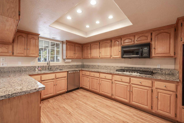 Spacious two-story mountain home on a large 12,443 sq ft lot offering 3 bedrooms plus a bonus room and 2 bathrooms, along with an oversized double garage with abundant built-in storage shelving. The garage also features a newer garage door and opener. Major exterior improvements include a newer roof and exterior paint completed just a few years ago. During the re-roof, the original tongue-and-groove section was upgraded with added framing and high-quality insulation, new sheathing, and asphalt shingles - significantly improving energy efficiency and durability. Inside, the home offers a large living room anchored by a classic floor-to-ceiling brick wood-burning fireplace. The kitchen generously sized with custom oak cabinetry, granite countertops, built-in oven, and newer appliances including a cooktop, dishwasher, garbage disposal, and faucet. Adjacent dining area and kitchen have been freshly repainted. Upstairs features three bedrooms and a remodeled bathroom with a nicely tiled shower, new fixtures, and new carpet throughout the entire upper level and staircase. The downstairs bathroom has also been updated with re-plumbed shower plumbing, refurbished shower stall, new vanity, basin and facet. Additional features include a large laundry room with direct access to both the backyard and garage, laminate wood-look flooring downstairs, and a heating system approximately five years old. The water heater in the garage is newer and installed to current code. The bonus room opens through double French doors to a large, covered patio area ready for finishing touches. This well-maintained property offers generous living space, thoughtful upgrades, and plenty of storage - ideal for full-time living, a second home, or investment opportunity in the Big Bear area.