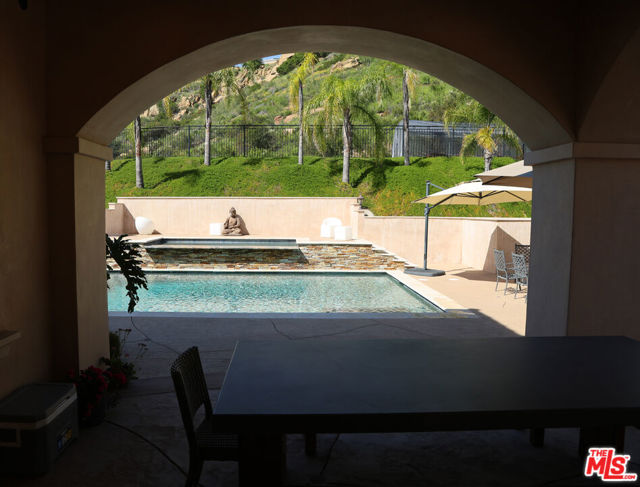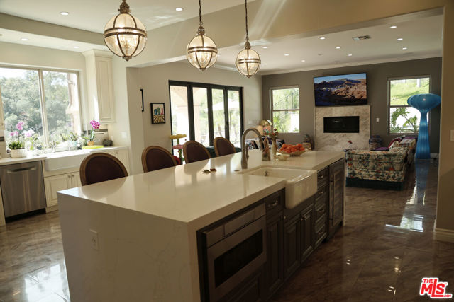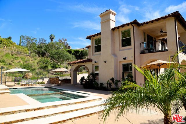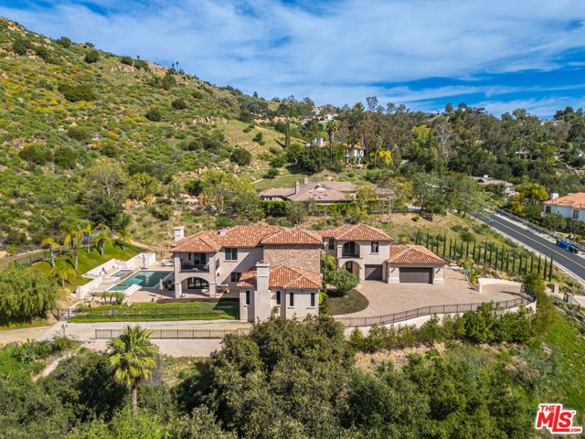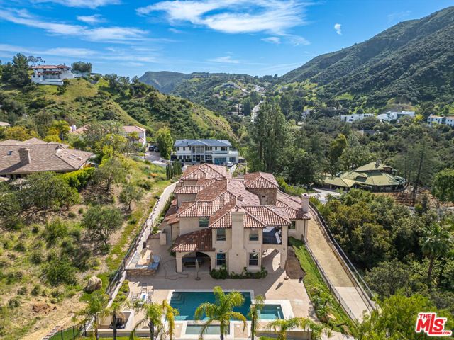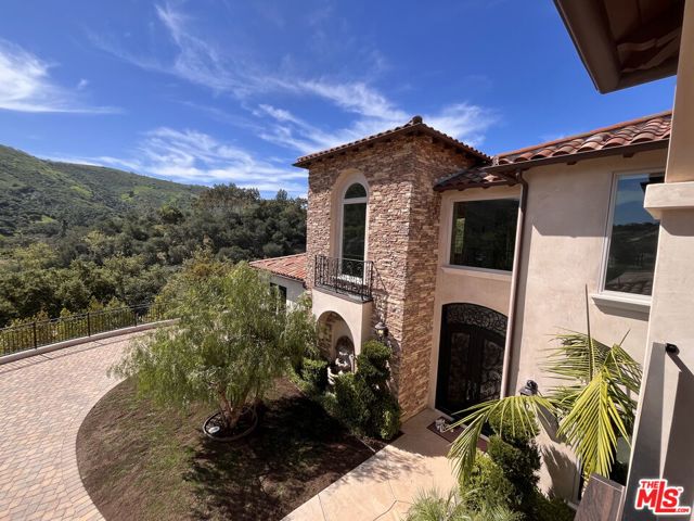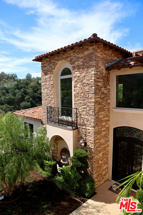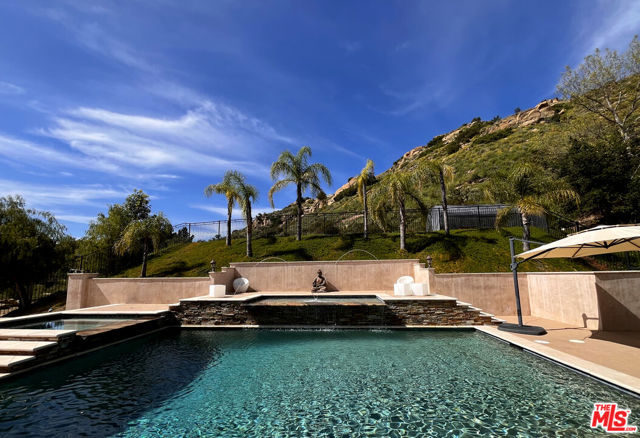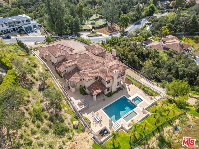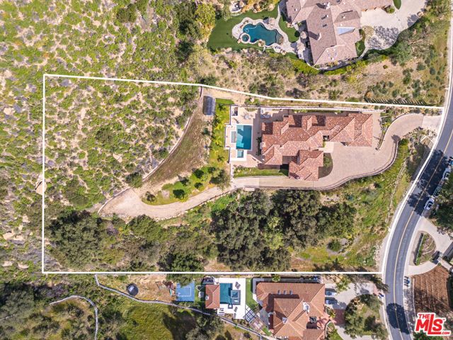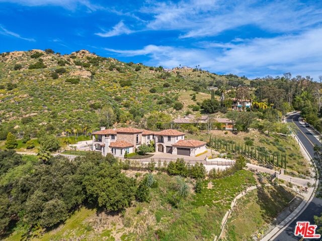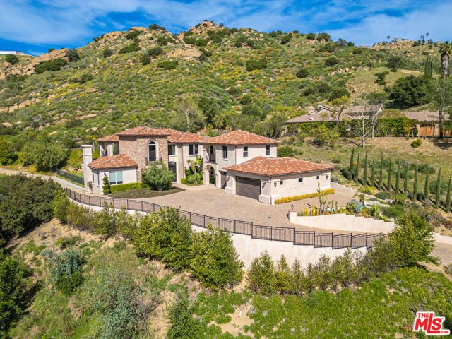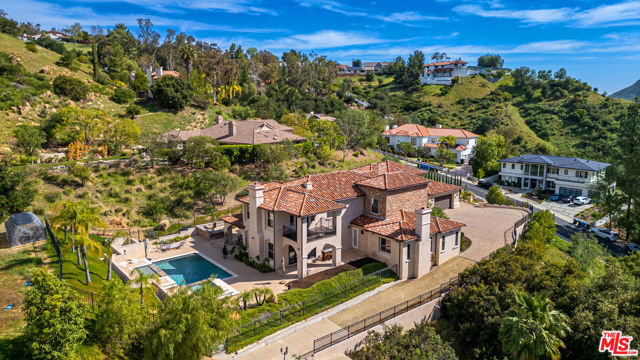 Refined Luxury Living with Resort-Style Grounds and Private Cinema. A long private gated drive ascends to this newer Mediterranean estate, built in 2019, perched atop its own private knoll within the prestigious guard-gated community of Bell Canyon. Offering exceptional privacy and sweeping views, this extraordinary custom residence was built with an uncompromising commitment to quality, craftsmanship, and thoughtful design.Grand double iron doors open to a dramatic foyer with soaring ceilings and expansive windows that flood the home with natural light. The gourmet kitchen features a stunning oversized island with waterfall quartz countertops, custom cabinetry, and premium Sub-Zero and Wolf appliances, opening seamlessly to the family room with a custom fireplace and disappearing glass doors that create effortless indoor-outdoor living.Designed for ultimate entertainment, the private cinema features soundproof insulation, premium GoldenEar speakers, a 145-inch perforated projection screen, high-end reclining seating, a dedicated AV equipment room, and its own independent AC system. The home is equipped with a Control4 smart home system, commercial-grade touch screen thermostats, and full network wiring throughout.The luxurious primary suite offers a private veranda, dual walk-in closets, and a spa-like bath. All bedrooms are thoughtfully designed with no shared walls or ceilings, creating exceptional privacy, and are pre-wired for ceiling speakers.Technology is seamlessly integrated throughout the home with Wi-Fi access points installed across the entire residence, providing strong connectivity throughout the property. The pool system is also connected to Wi-Fi, allowing remote control and monitoring for convenience and ease.Set on approximately 2.4 beautifully landscaped acres, the grounds feature mature trees, impressive engineered retaining walls, and a resort-style backyard complete with a modern pool and spa with Baja shelf, outdoor hot shower, and multi-zone outdoor speakers.Additional highlights include humidifier upgrades to each HVAC system, GoldenEar ceiling speakers in the living room and library, DoorBird smart gate entry system with kitchen monitor, and a garage equipped with three electric vehicle charging outlets.