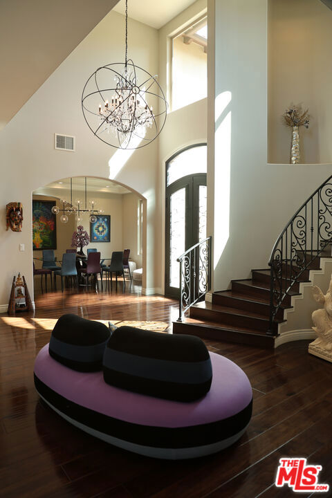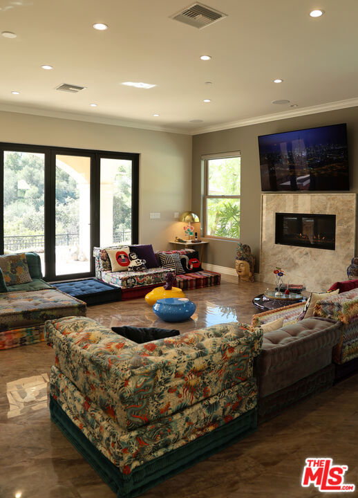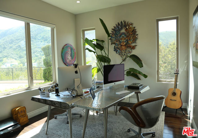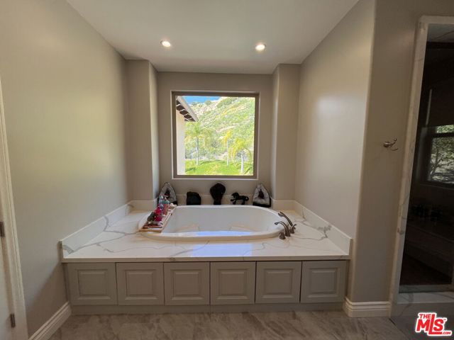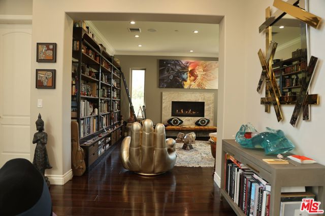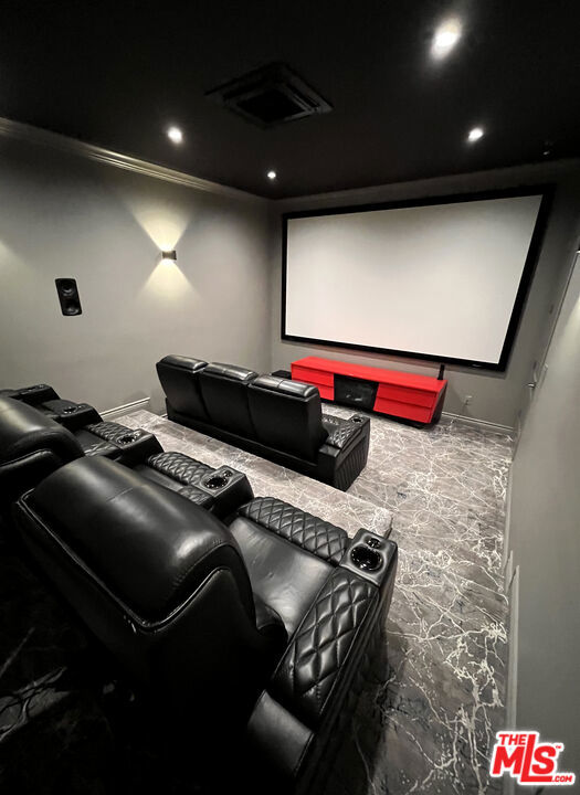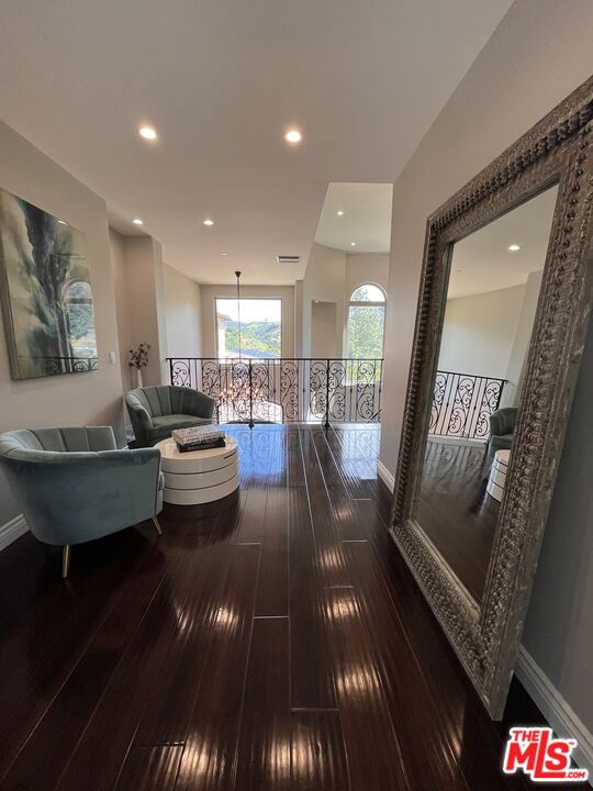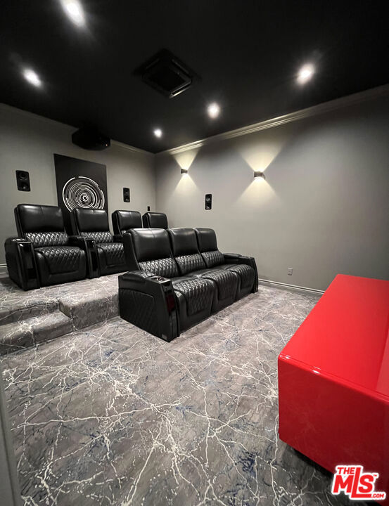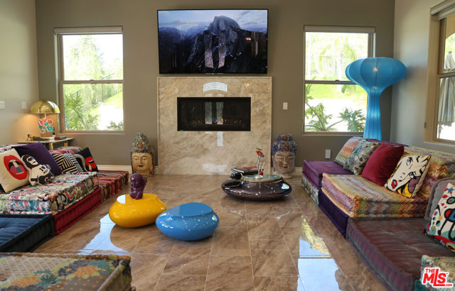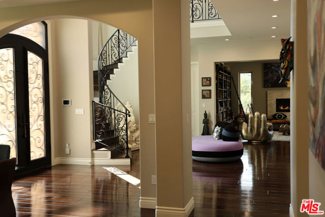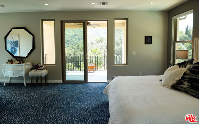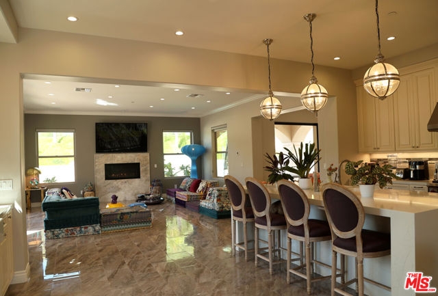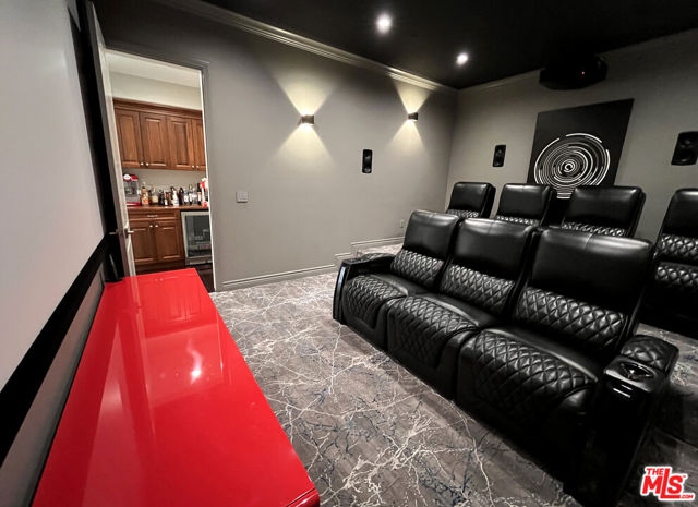 Refined Luxury Living with Resort-Style Grounds and Private Cinema. A long private gated drive ascends to this newer Mediterranean estate, built in 2019, perched atop its own private knoll within the prestigious guard-gated community of Bell Canyon. Offering exceptional privacy and sweeping views, this extraordinary custom residence was built with an uncompromising commitment to quality, craftsmanship, and thoughtful design.Grand double iron doors open to a dramatic foyer with soaring ceilings and expansive windows that flood the home with natural light. The gourmet kitchen features a stunning oversized island with waterfall quartz countertops, custom cabinetry, and premium Sub-Zero and Wolf appliances, opening seamlessly to the family room with a custom fireplace and disappearing glass doors that create effortless indoor-outdoor living.Designed for ultimate entertainment, the private cinema features soundproof insulation, premium GoldenEar speakers, a 145-inch perforated projection screen, high-end reclining seating, a dedicated AV equipment room, and its own independent AC system. The home is equipped with a Control4 smart home system, commercial-grade touch screen thermostats, and full network wiring throughout.The luxurious primary suite offers a private veranda, dual walk-in closets, and a spa-like bath. All bedrooms are thoughtfully designed with no shared walls or ceilings, creating exceptional privacy, and are pre-wired for ceiling speakers.Technology is seamlessly integrated throughout the home with Wi-Fi access points installed across the entire residence, providing strong connectivity throughout the property. The pool system is also connected to Wi-Fi, allowing remote control and monitoring for convenience and ease.Set on approximately 2.4 beautifully landscaped acres, the grounds feature mature trees, impressive engineered retaining walls, and a resort-style backyard complete with a modern pool and spa with Baja shelf, outdoor hot shower, and multi-zone outdoor speakers.Additional highlights include humidifier upgrades to each HVAC system, GoldenEar ceiling speakers in the living room and library, DoorBird smart gate entry system with kitchen monitor, and a garage equipped with three electric vehicle charging outlets.