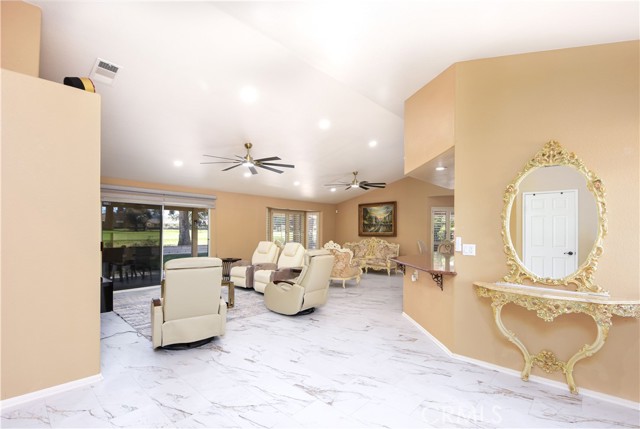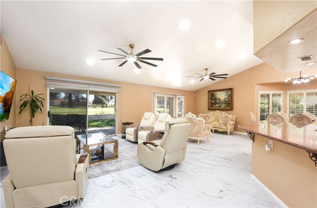 Welcome to this beautifully renovated golf course home in the desirable Seven Hills 55+ community in Hemet. This 1,834 sq ft home offers 3 bedrooms, 2 bathrooms, and a dedicated office, with a 2-car garage plus a golf cart garage for added convenience. Inside you’ll find high ceilings, skylights in the kitchen, brand new luxury vinyl plank (LVP) flooring, fresh paint, and updated fixtures and ceiling fans throughout, creating a bright and modern feel. Step outside to a spacious backyard directly on the golf course, perfect for relaxing or entertaining. The outdoor space features an expansive covered patio, outdoor kitchen with barbecue, gas fire pit, and a charming 2-seater swing, with patio space extending through both the backyard and side yard to enjoy the beautiful surroundings. The home also includes a Tesla EV charger in the garage, offering convenient at-home charging for electric vehicles. Located in the active 55+ Seven Hills community, residents enjoy access to a golf course, clubhouse, fitness center, pool, and social activities, all while benefiting from an incredibly low HOA of only $45 per year and being close to shopping, dining, and local amenities. Just minutes from the city, this home is also close to Diamond Valley Lake—one of Southern California’s largest man-made reservoirs—offering a wide range of recreational activities including fishing, boating, biking, hiking, and seasonal wildflower viewing. The home is also just minutes from the beautiful Soboba Casino Resort, offering entertainment, dining, and live events, and is conveniently located within driving distance of Temecula and Murrieta, known for their wineries, shopping, restaurants, and entertainment. This move-in ready golf course home offers comfort, upgrades, and resort-style living in one of Hemet’s most sought-after communities.