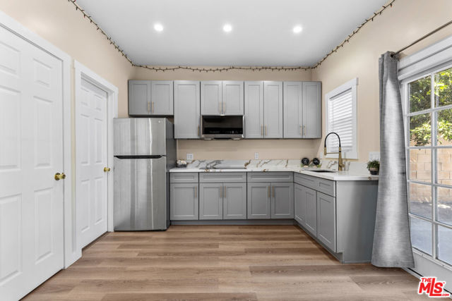 Looking for a modern, turnkey home with a fully permitted detached ADU in the city of Downey? Look no further! This completely reimagined home has been upgraded to the nines. The main home has 4 bedrooms and 2 bathrooms and went through a full interior remodel in 2021 including modern bathrooms, new flooring, full electrical rewiring and panel upgrade, new PEX plumbing throughout, a new energy-efficient heat pump system, recessed lighting, newer windows, a kitchen revamp with all new shaker cabinets, quartz countertops, and smart Samsung appliances. The home has a beautiful entertainment build-out and the whole home is equipped with smart features such as Lutron Intelligent lights and Whole-home Sonos sound system. Want space for extended family to stay in or rental income to help offset your mortgage payments? The detached ADU will be perfect for you and was completed in 2022 and includes 9' high ceilings, modern designer finished kitchen and bathrooms, dedicated mini-split system, in-unit laundry hookups, and its own 40-gallon water heater. Step outside to this entertainer's oasis featuring a gas fireplace and a large gazebo with a built-in heater, electric fireplace, and TV hookups. This private home is fully gated with an electric front gate and a large driveway and sits on over 7,000 sq ft of lot space. It doesn't end there! The home also includes a paid-off Enphase solar system. Enjoy an extremely convenient location with nearby parks, easy freeway access, the Lakewood Metro station, Kaiser Downey, Downey Landing shopping center, and so much more! This unique opportunity won't last so don't miss out, come see it today!