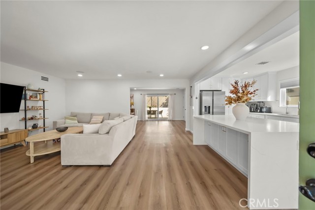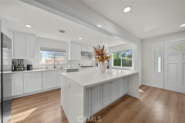 Welcome to this beautifully updated property offering a rare combination of space and modern upgrades in the desirable Granada Hills area. The main residence features 4 bedrooms and 2 bathrooms across approximately 1,712 sq ft, with an open and bright floor plan designed for comfortable living and entertaining. The spacious living area flows seamlessly into a fully remodeled kitchen complete with modern cabinetry, sleek countertops, a large center island, and stainless steel appliances. Recessed lighting, updated flooring, and large windows throughout create a warm and inviting atmosphere filled with natural light. The backyard provides a clean and functional outdoor space perfect for relaxing or entertaining, while the spacious driveway offers ample parking. The property also includes a permitted Junior ADU (JADU) of approximately 344 sq ft, bringing the total living space to approximately 2,054 sq ft. The JADU features its own kitchen, bathroom, and living area, along with a private patio space, making it ideal for extended family, guests, or additional rental income potential. Located in a quiet residential neighborhood of Granada Hills, the property offers convenient access to local schools, shopping, dining, and major commuter routes.