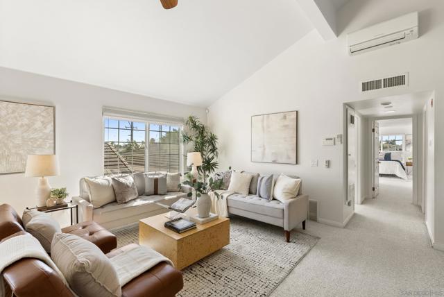 Beautiful 1,200 sqft beach penthouse just a few blocks from the sand. This highly upgraded and meticulously maintained home offers comfortable coastal living with thoughtful improvements throughout. The kitchen has been fully remodeled and features custom cabinetry and high end finishes, creating a clean and modern space that opens seamlessly to the living area. Enjoy year round comfort with a mini-split + central heat, vaulted ceilings, an abundance of natural light, along with sliding windows out to your private balcony. The home also includes convenient in-unit laundry plus two dedicated parking spaces in the gated, community garage. Located in the heart of one of Imperial Beach, the location and accessibility is exceptional. Cafes, dining, shopping, parks, and the sand are all just steps from your front door, making this the ideal blend of lifestyle, comfort, and value along the coast.