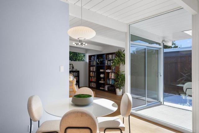 A rare opportunity to own a beautifully remodeled, move-in-ready Eichler in the heart of San Mateo. This light-filled residence showcases classic mid-century modern design enhanced with contemporary upgrades that preserve the homes architectural character. The open-concept floor plan centers around a remodeled kitchen and updated baths, complemented by engineered hardwood flooring and dual-pane windows. Energy efficiency and sustainability come together with a foam roof, owned solar, 3 Tesla Powerwalls, and all-electric heat pump system. The home offers a spacious primary suite with an ensuite bath and 3 additional bedrooms ideal for family, guests, or a home office. The 4th bedroom is currently open to the living area, creating an airy flexible space that can easily be converted back. Indoor-outdoor living takes center stage with floor-to-ceiling glass and 3 sliding doors that open to a new concrete patio, perfect for entertaining. A spacious backyard offers space for outdoor gatherings, creating a seamless extension of the living space. Ideally located on the Peninsula, the home offers exceptional convenience with easy access to SFO, Caltrain, 101, 92, and 280. Major tech employers including YouTube, Meta, Snowflake, and Google are within easy reach of this 19th Ave. Park Gem.