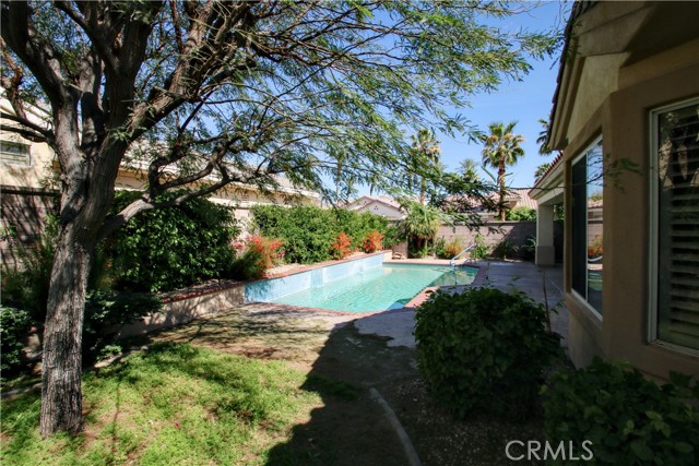 Welcome to resort-style living in the highly desirable 55+ community of Sun City Palm Desert. This spacious home offers over 2,100 square feet of comfortable living with 2 bedrooms and 2 bathrooms, both featuring walk-in showers. The primary suite is generously sized with a large walk-in closet and a primary bath with dual sinks. The home features an open floor plan with abundant natural light and beautiful views of the private in-ground pool through numerous windows along the back of the home. The inviting living room includes a cozy fireplace with built-in shelving, creating a warm and elegant focal point. Designed for flexibility, the home also includes an office and an additional bonus room, perfect for hobbies, guests, or extra workspace. The large kitchen is ideal for entertaining, featuring granite countertops, a breakfast nook, and a separate dining area. Additional conveniences include an indoor laundry room and a 2-car garage plus a dedicated golf cart garage. Residents of Sun City Palm Desert enjoy world-class amenities including two championship 18-hole golf courses, pickleball, tennis, softball, bocce ball, and an 18-hole miniature golf course. The community also offers an honor library, arts and crafts studios, a ballroom for entertainment and events, four saltwater pools with hot tubs, three clubhouses, three restaurants, a private postal center, and two fully equipped fitness facilities. Experience the best of active adult desert living in one of the Coachella Valley’s premier communities.