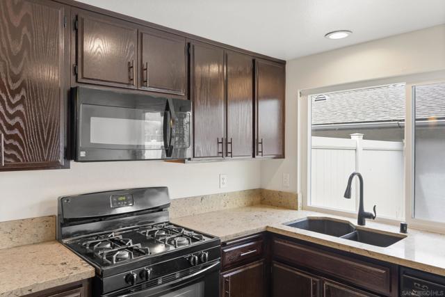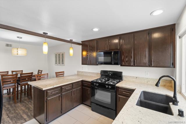 Welcome to 670 Kumquat Way, a beautifully maintained single-level condo that lives like a home. High ceilings and an open layout create a bright, airy feel, while thoughtful upgrades including quartz countertops, vinyl flooring, and dual-pane windows add modern comfort throughout. The kitchen is equipped with a gas stove, microwave, refrigerator, and generous workspace, perfect for both everyday living and entertaining. Just outside, the private patio provides an inviting space to relax, dine, or enjoy time with guests. A detached two-car garage connects conveniently through the patio, and the front entrance faces a street with plenty of guest parking, a rare and practical feature. Residents also enjoy access to two community pools and spas, along with close proximity to the San Luis Rey Bike Path for outdoor recreation and scenic rides to the beach. 670 Kumquat Way combines the comfort of a home with the ease of condo living.