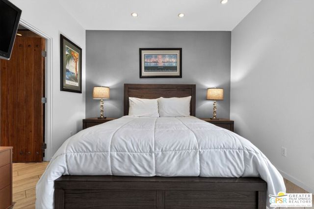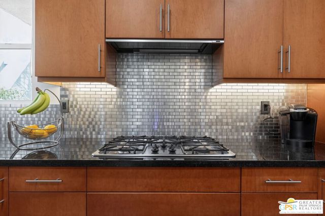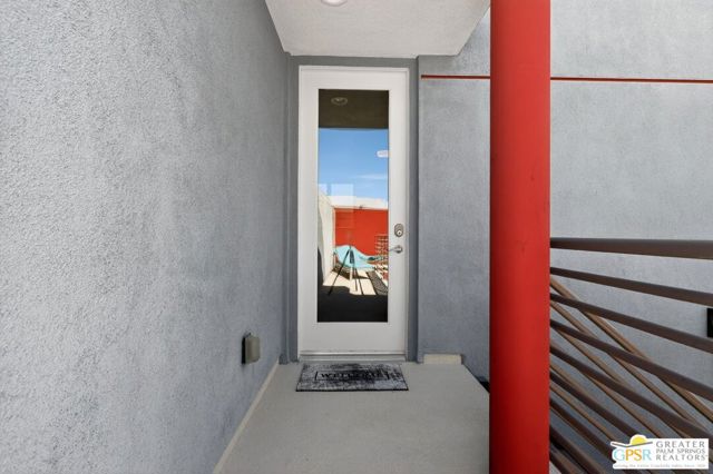 Welcome to this stunning 3-bedroom, 4-bathroom home located in the highly sought-after Escena Golf Club community in Palm Springs, offering approximately 2,422 square feet of beautifully designed living space. This exceptional residence showcases soaring ceilings, an open-concept floor plan, and thoughtful bedroom separation, creating both comfort and privacy for everyday living and entertaining. Inside you'll discover a spacious great room filled with natural light, featuring ultra-high ceilings, a cozy gas fireplace, and seamless indoor-outdoor living with direct access to the backyard oasis. The gourmet kitchen flows effortlessly into the dedicated dining area and expansive living space, making it perfect for hosting family and friends. Designer paint colors throughout the home create a warm and inviting atmosphere. The luxurious Primary Suite serves as a private retreat with high ceilings, direct access to a private patio and the beautiful saline pool, a generous walk-in closet, and a spa-inspired bathroom complete with dual sinks, a walk-in shower, and a separate soaking tub. Located on the opposite side of the home for added privacy, the south-facing Junior Ensuite features its own patio along with a private bathroom showcasing a spacious walk-in shower. This home also offers thoughtful conveniences including an indoor laundry room with sink, an attached two-car garage equipped with its own mini-split air conditioner, and a cabana bathroom with direct access to the pool, ideal for guests enjoying the outdoor spaces. Entertain in style outdoors with a private saline pool, multiple outdoor seating areas, and beautiful surrounding views. Guests will especially appreciate the second-level casita, accessed by a private exterior staircase, offering its own private entrance and scenic views, perfect for visitors or additional flexibility. Additional highlights include solar panels for energy efficiency and the option for the home to be delivered fully furnished, excluding select personal items. Located within the Escena Golf Club community, residents enjoy HOA amenities that include a guarded entrance, street sweeping, and beautifully maintained common area landscaping, offering both security and convenience in one of Palm Springs most desirable communities.