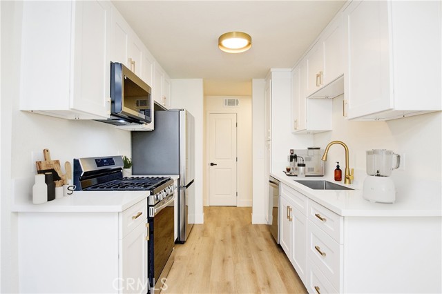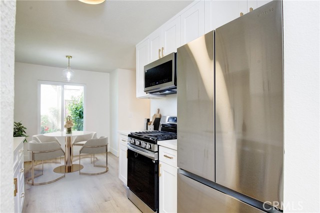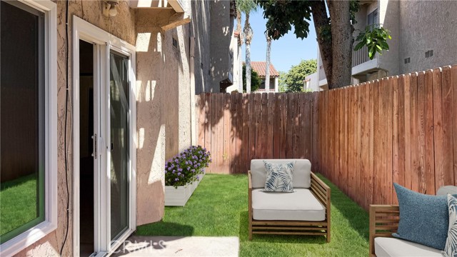 Imagine starting mornings along the tranquil tree-lined paths that lead to your own ground-level retreat in the La Veta Monterey Condominiums! Vinyl windows pour sunlight across upgraded luxury vinyl flooring throughout, giving the living areas a bright, relaxed vibe while sliding glass doors invite you out onto a secluded front patio ideal for coffee, conversation, or entertaining. The refreshed kitchen blends style and function with its quartz countertops, new appliances, and a cheerful breakfast nook that makes meals feel effortless. Inside your generous primary suite, a wide closet, renovated ensuite with a walk-in shower, and direct access to the fenced backyard create a private corner to recharge. The second bedroom and full bath offer versatility for guests, hobbies, or as a home office. Notables include fresh interior paint, updated HVAC, and a 1-car garage with a newly installed door. Residents enjoy a community clubhouse with a pool, basketball court, and BBQs, all in proximity to parks, MainPlace Mall, CA-22, and I-5. Come experience how naturally your next chapter could feel here!
