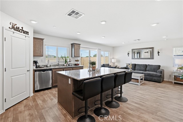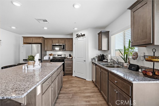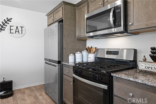 Welcome to Paradera Place community of Winchester! An opportunity to own a New Construction in this community without the wait. This move-in ready property offers the comfort of modern living with thoughtful features already in place. Offering 1,575 square feet, the home features 3 bedrooms, 2.5 bathrooms, and a versatile upstairs loft that can easily function as a home office, playroom, or additional living space. The open-concept floor plan creates a seamless flow between the living room, dining area, and kitchen—perfect for everyday living and entertaining. The kitchen serves as the heart of the home with granite countertops, stainless steel appliances, shaker-style cabinetry, a walk-in pantry, and a center island with seating. Luxury vinyl plank flooring, recessed lighting, and abundant natural light add to the home’s clean and modern feel. A powder room is conveniently located in the first floor. Upstairs you’ll find the spacious primary suite with a private bathroom and walk-in closet, along with two additional bedrooms, a full bathroom, loft area, and a convenient laundry room. Additional highlights include PAID OFF SOLAR for immediate energy savings, SmartHome features, and a two-car garage already set up for an electric vehicle. Outside, enjoy a fully landscaped and irrigated front and back yard, creating a cozy and low-maintenance outdoor space ready to enjoy from day one. Situated on a desirable corner lot, the home is within walking distance to the community park and just minutes from the 215 freeway, offering both convenience and neighborhood charm. A wonderful home ready for the new homeowner!