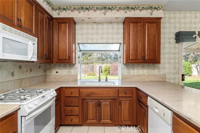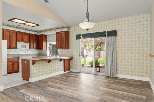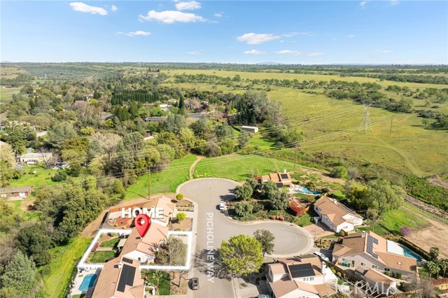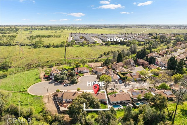 Situated at the end of Picholine Way with endless nature trails at your fingertips, this is the perfect place to call home! As you enter, you are greeted by a large vaulted ceiling with lots of natural light pouring in through the large picture window, a cozy gas fireplace, and new luxury vinyl flooring that runs throughout the living space and bedrooms. The split floor plan is ideal with the guest bedrooms and bathroom located on one side of the home and the primary suite on the other. In the primary bedroom there is a large walk-in closet, an en suite bathroom with a tub, dual sink vanity, and walk-in shower. In the kitchen there are solid surface counters, warm wood cabinetry, and a dreamy garden window that looks out on the backyard and Little Chico Creek. The yard is unbeatable with direct access to the creek allowing you to immerse yourself with nature. You can enjoy the tranquil sounds of the creek from your back patio while sipping your morning coffee or walk out your front door and be on a trail in a few steps. Other notable features include a tile roof, indoor laundry, an abundance of storage, and mature landscaping including a lemon tree and olive tree. Being located at the end of the street all while being close to schools, Mariam Park, and shopping, makes this the perfect blend for Chico living.