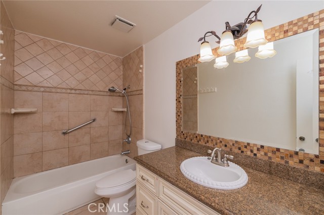 This is a beautiful 2 story condo located in the city of Ontario. Feature 3 bedrooms, 2.5 bathrooms with approx. 1408 sq.ft. Spacious living room with cozy fireplace. Kitchen with granite countertops, cabinetry, marble mosaic and one panty has 3 pull out trays. The dining room has a slider that opens to the private patio which is great for entertaining. Tile on the living room, dining room, and kitchen. New interior paint, laminate floor throughout second floor. High vaulted ceiling in the master bedroom with granite countertops in the bathroom. Other 2 bedrooms and 1 guest full bath. All the bathrooms are granite countertops, cabinetry, mirror decorated with marble mosaic for two bathrooms. Central A/C unit. Dual panel window. Laundry room in the garage. Attached 2 car garage with direct access. Community pool and spa. 1st and 2nd floor with recessed light. Close to park, restaurants, schools, Ontario Mills, airport, transportation, and markets. EZ to freeway 10 & 60.