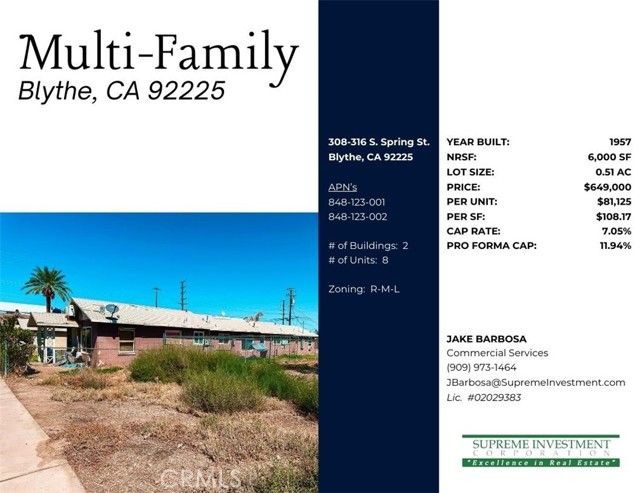 Fantastic Income Producing Multi-Family Property with exceptional room to raise Rents! All 8-Units are Fully Occupied with each Occupant having a Month-to-Month Tenancy. With Market Rents continuously increasing at a steady pace, raising value and producing a steady stream of high rental income should come at ease for any investor. Acquire S. Spring St. Today and continue to build your portfolio with this solid asset!