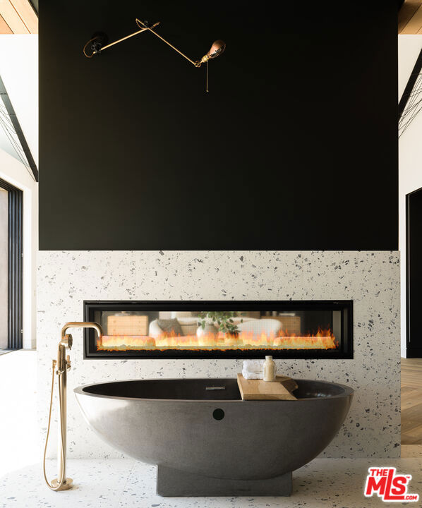 Perched on a quiet cul-de-sac above the iconic Chateau Marmont and moments from the legendary Sunset Strip, this newly built natural architectural estate offers the perfect balance of privacy, design, and panoramic city views. Spanning over 10,000 square feet of usable space across interior living areas, balconies, and terraces the home is situated on a rare double lot and features expansive grounds along with a thoughtfully designed traditional, open two-story floor plan that blends striking aesthetics with exceptional functionality- an uncommon combination for homes with views of this caliber. Motorized glass pocket doors create a seamless indoor-outdoor flow, opening to a sprawling flat backyard designed for world-class entertaining featuring a full outdoor theatre with sunken lounge, an oversized zero edge-pool and spa with a submerged fire element, full outdoor kitchen, putting green and a spacious rooftop terrace with views of Downtown, the Westside and beyond. Inside, the home continues its narrative of elevated living with an extraordinary suite of amenities, including a private home theater, a tranquil wellness center that flows directly into the garden, a sophisticated office, and thoughtfully designed service spaces. The primary suite serves as a secluded sanctuary, embodying the ultimate indoor-outdoor lifestyle. Expansive wraparound balconies frame sweeping views of the Los Angeles basin and feature a private lounge with an entertainment center, a covered massage terrace with fire pit, a spa-inspired bath retreat, and an impeccably designed walk-in wardrobe. Both secluded and perfectly positioned, the estate offers the rare luxury of absolute privacy while remaining minutes from the world-class dining, culture, and nightlife that define Los Angeles. A home of this caliber is not simply a residence- it is a private hillside retreat above the heart of the city.