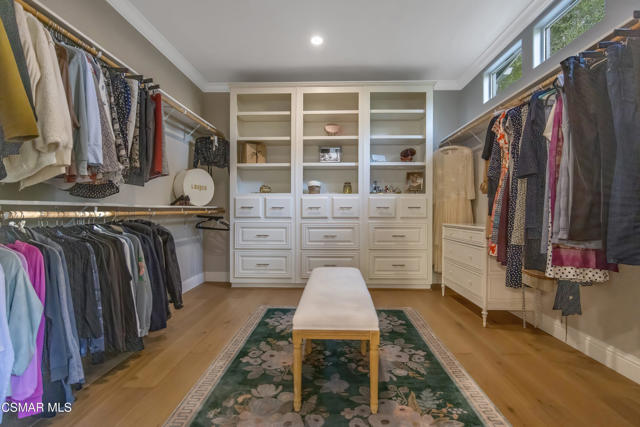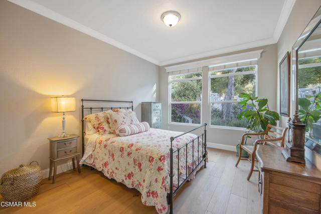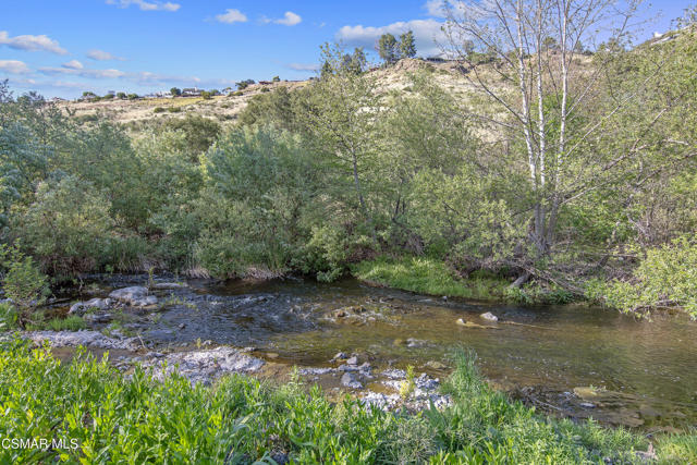 Welcome to your creekside Staycation Oasis!Nestled on a tranquil, tree-lined cul-de-sac in the heart of the privately gated Oak Forest Estates, this rare gem offers stunning views and an unparalleled lifestyle. Perfect for family gatherings, lively get-togethers, or quiet evenings at home, this charming retreat is designed for seamless entertaining and easy living.As you approach, the beautifully landscaped yard and inviting front porch seating area set the tone for what lies beyond. Step inside to discover a thoughtfully updated 3 bedroom, 2 bath single-story home where natural light pours through expansive windows, illuminating the open-concept design. The great room, with its cozy fireplace, flows effortlessly into the dining area and chef's kitchen, creating the ultimate space for hosting or simply unwinding. The kitchen is a true centerpiece, featuring stainless steel appliances, custom cabinetry, pantry and an oversized quartz island with seating--ideal for casual mornings or lively dinner parties. French doors open to a serene back deck, offering effortless indoor-outdoor living.The primary suite, a personal sanctuary, boasts a spa-like soaker tub, a massive walk-in closet, and French doors that lead to a private deck overlooking the hills and seasonal creek. The secondary bedrooms are tucked at the front of the home, ensuring privacy and comfort for all. The backyard is a haven of tranquility, surrounded by majestic oak trees and lush greenery, with multiple seating areas perfect for relaxing, entertaining, or soaking in the natural beauty. Enjoy your morning coffee, host an afternoon BBQ, or sip a glass of wine in the evening as you watch deer, egrets, and hawks. Feeling adventurous? Wander down to the creek to connect with nature up close.Built in 2020, this home is packed with upgrades, including French oak floors, designer light fixtures, soaring ceilings, and four skylights that bathe the space in sunlight. Practicality meets peace of mind with fire-hardy concrete siding, a rare 2-car garage, and land ownership.Living in Oak Forest Estates means enjoying a vibrant, amenity-rich community. Take advantage of the pool, spa, gym, game room, RV parking, clubhouse, banquet room, and more--all set against a stunning natural backdrop. With guest parking just steps from your door, hosting is a breeze. Beyond your front gate, you'll find parks, top-rated schools, hiking trails, excellent dining, shopping, and easy freeway access. This exceptional home offers the best of Westlake Village living--a perfect blend of convenience, style, and serenity.Every day feels like a vacation here. Welcome to your own slice of paradise!