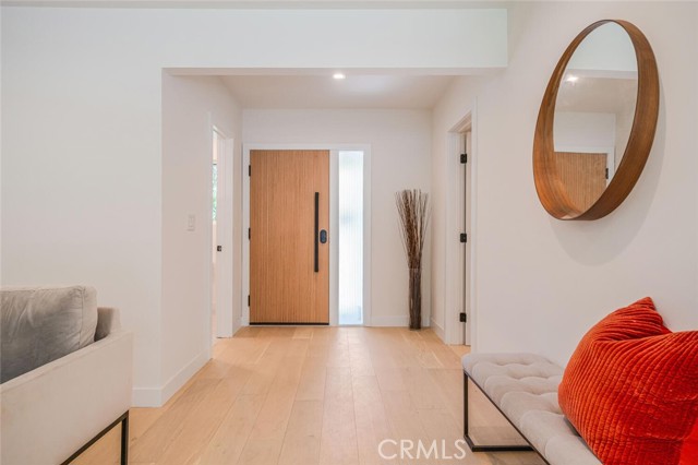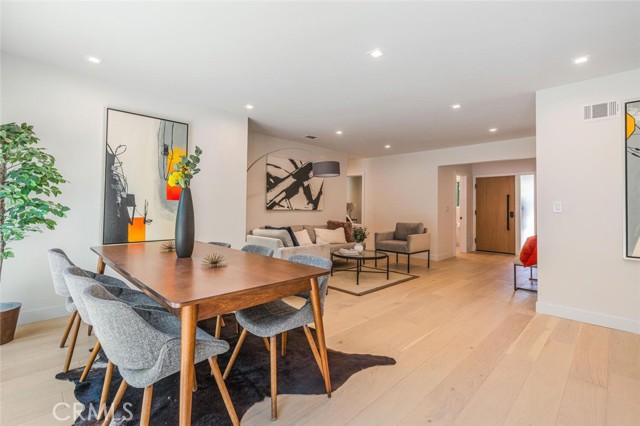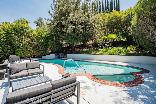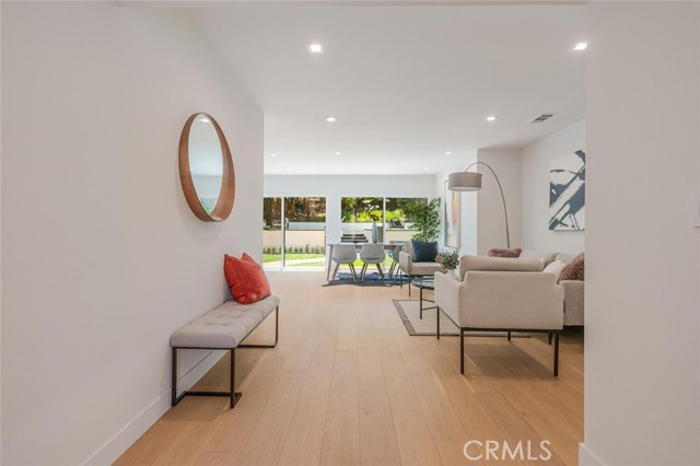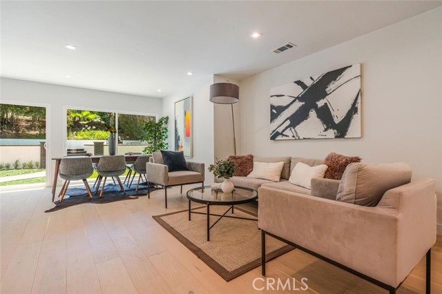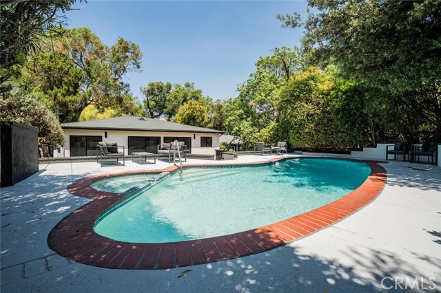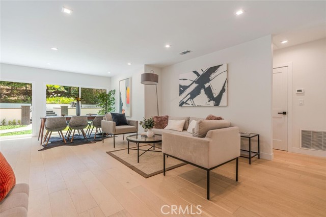Turnkey Single-Story Pool Home | South of the Blvd | ADU Potential | Located on a nearly 7,300 sqft lot in one of Woodland Hills’ most desirable South-of-the-Boulevard neighborhoods, this 3-bedroom, 2-bath home offers 1,460 sqft of updated living space with a bright, open layout designed for easy indoor-outdoor living. The living and dining areas flow directly into the kitchen, creating a comfortable and functional space for both everyday living and entertaining. The modern kitchen features quartz countertops, neutral cabinetry with integrated storage, stainless appliances, a farmhouse sink, and a breakfast bar for both casual seating and added workspace. The primary suite opens to the backyard and includes wall-to-wall wardrobes along with an updated bath featuring dual sinks and a deep soaking tub. The backyard offers the quintessential California lifestyle with a sparkling pool and spa, patio space for outdoor dining, and a grassy yard for play or relaxation. Additional highlights include white oak engineered flooring, a smooth stucco exterior, and a cohesive palette of modern finishes throughout. The garage with separate entrance has excellent ADU potential, providing flexibility for future guest space, rental income, or a private office. Ideally located near top-rated schools, parks, shopping, and dining, this home delivers comfort, style, and a highly desirable Woodland Hills location. Added Value: per NHD report, the property is not located in a high fire hazard zone, which offers an exceptional opportunity to save on insurance.