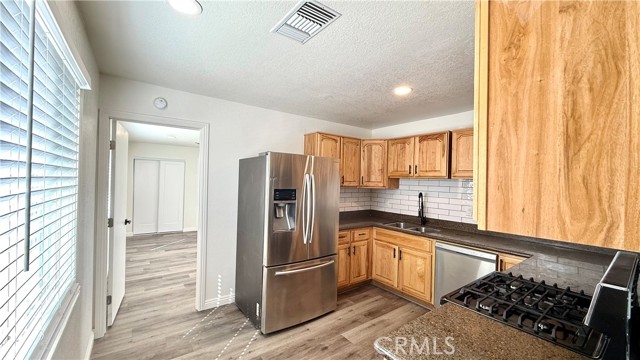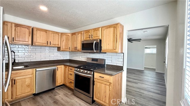 Fully renovated and move-in ready home featuring modern upgrades throughout. This beautifully updated property offers new flooring, fresh interior paint, recessed lighting, and a bright open-concept layout filled with natural light. The kitchen includes ample cabinetry, sleek countertops, subway tile backsplash, and stainless steel appliances, all included. Bathrooms have been remodeled with modern vanities, custom tile showers, and contemporary finishes. Major system upgrades include new gas piping, new electrical throughout, and new plumbing, providing peace of mind for years to come. The exterior features low-maintenance desert landscaping, clean curb appeal, and a spacious driveway. Ideally located within walking distance to a local park, close to shopping, and just minutes from the freeway, this turnkey home is perfect for first-time buyers, investors, or anyone looking for a fully upgraded property with no work needed.