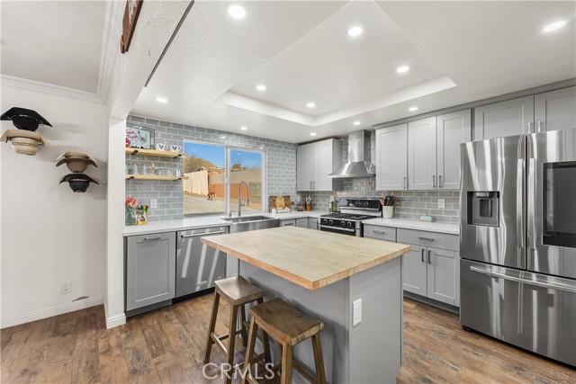 Ranch-style home offering 1,880 sq ft with 3 bedrooms and 2 bathrooms. Features include an open floor plan, updated kitchen with modern countertops, and laminate flooring throughout the main living areas. The home offers a spacious layout with a large dining room ideal for gatherings, as well as a generously sized primary bedroom. Additional features include a 2-car garage and indoor-outdoor flow to a large backyard patio. The fully fenced lot provides added privacy, while the expansive backyard includes multiple shipping containers offering excellent potential for workshop space, storage, or other uses. Conveniently located in Lake Los Angeles with ample space and versatility to make it your own.